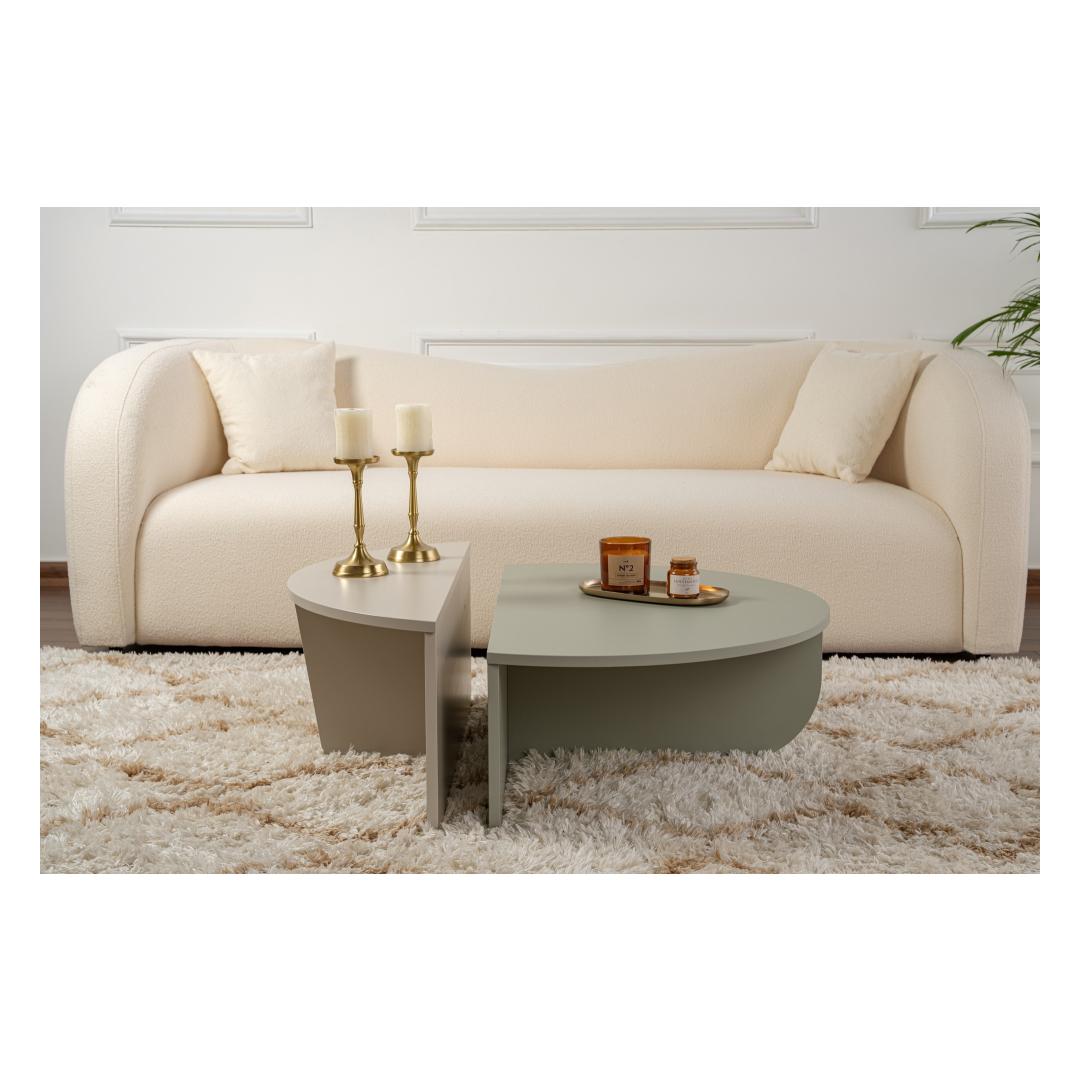 Muuda oma eluruum meie kauni Ash Green ja Sandstone kohvilaudadega. See ese ei ole lihtsalt laud, vaid stiili ja rafineerituse väljendus. Sujuv disain ja modernsed värvid tõstavad koheselt iga ruumi ilmet, luues sooja ja kutsuva atmosfääri, millest saavad osa nii sina kui ka sinu külalised.Elegantne DisainAsh Green ja Sandstone värvide kombinatsioon annab sellele kohvilaudadele ainulaadse ja kaasaegse ilme, mis sobib igasuguse sisustuse stiiliga. Puhtad jooned ja minimalistlik disain muudavad selle mitmekülgseks esemeks, mida on lihtne igasse ruumi integreerida.Kestlik KonstruktsioonValmistatud 100% melamiinkattega puitlaastplaadist, on see kohvilaud loodud kestma. 18mm paksus tagab stabiilsuse ja vastupidavuse, nii et saad seda eset nautida aastaid. Kvaliteetsed materjalid, mida selle valmistamisel on kasutatud, muudavad selle kriimustuste, plekkide ja veekahjustuste suhtes vastupidavaks, tagades, et see jääb pikaks ajaks kauniks.Mitmekülgne SuurusKaks erinevat suuruse valikut võimaldavad sul valida just selle, mis sobib kõige paremini sinu ruumi ja vajadustega. Olgu sul suur elutuba või hubane korter, see kohvilaud sobib ideaalselt ja pakub mugavat pinda jookide, suupistete ja dekoratsioonide jaoks.Tehnilised Üksikasjad:Materjal: 100% melamiinkattega puitlaastplaatPaksus: 18mmSuur Laud: Laius 90cm, Kõrgus 30cm, Sügavus 60cmVäike Laud: Laius 85cm, Kõrgus 35cm, Sügavus 30cmVärvid: Ash Green ja Sandstone Värv: Ash Green Sandstone