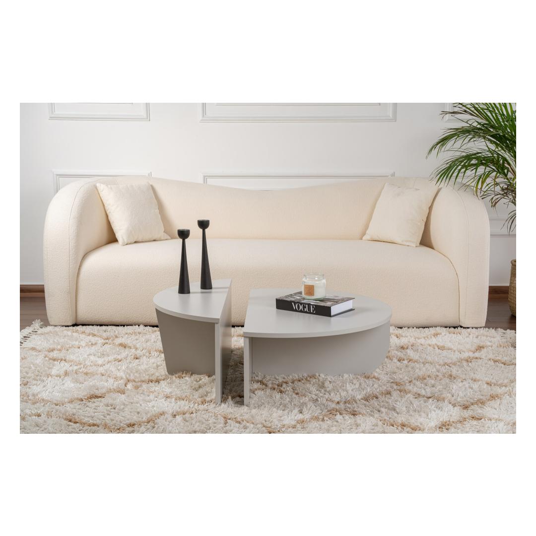 Muuda oma elutuba hubaseks ja stiilseks pelgupaigaks meie kauni halli kohvilaudaga. Valmistatud 100% melamiinkattega puitlaastplaadist, kiirgab see kohvilaud elegantsi ja vastupidavust. Selle voolujooneline disain ja kaasaegne värvipalett tõstavad koheselt iga ruumi ilmet, muutes selle ideaalseks lisandiks sinu koju.Tõsta oma eluruumi tasetLisa oma elutuppa natuke rafineeritust meie halli kohvilaudaga. Selle puhtad jooned ja minimalistlik disain loovad kaasaegse ilme, mis muljet avaldab sinu külalistele ja annab sinu kodus väljaütlemise. Olgu see siis kohvi nautimine või koosoleku korraldamine, see kohvilaud on igas olukorras ideaalne keskpunkt.Kvaliteetne käsitööValmistatud kvaliteetsest 18 mm paksusest melamiinkattega puitlaastplaadist, on see kohvilaud loodud kestma. Selle tugev konstruktsioon tagab stabiilsuse ja vastupidavuse, samas kui hall viimistlus lisab igasse ruumi elegantsi. Piisava pinnaruumi ja hoiustamisvõimalustega on see kohvilaud sama funktsionaalne kui stiilne.Tehnilised andmed:Materjal: 100% melamiinkattega puitlaastplaatPaksus: 18 mmMõõtmed (1 tükk): Laius: 90 cmKõrgus: 30 cmSügavus: 60 cmMõõtmed (1 tükk): Laius: 85 cmKõrgus: 35 cmSügavus: 30 cmVärv: Hall Värv: Grey