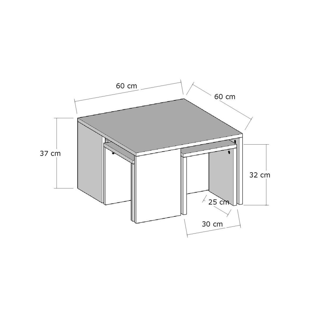 The coffee table, measuring 60cm in width, 60cm in height, and 37cm in depth, provides ample surface area for your favorite books, magazines, and beverages. The four side tables, each measuring 30cm in width, 32cm in height, and 25cm in depth, offer convenient storage and display options.