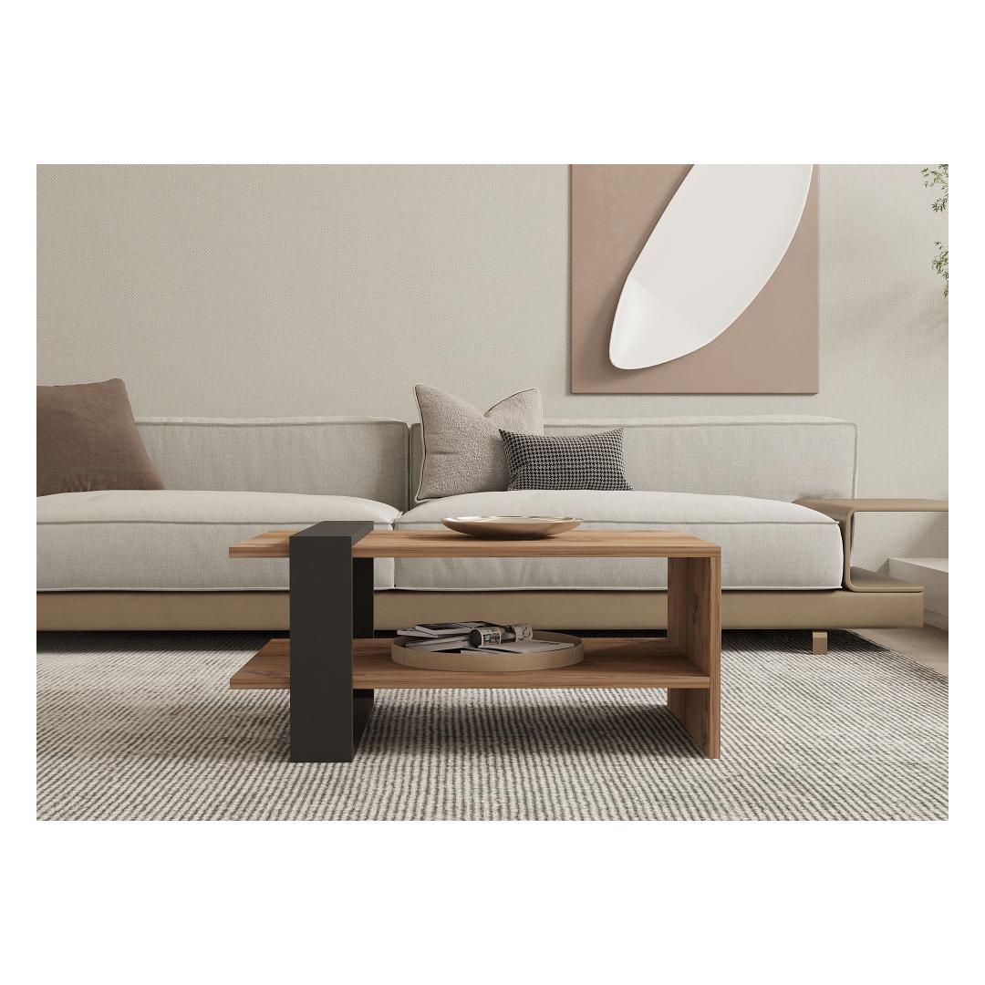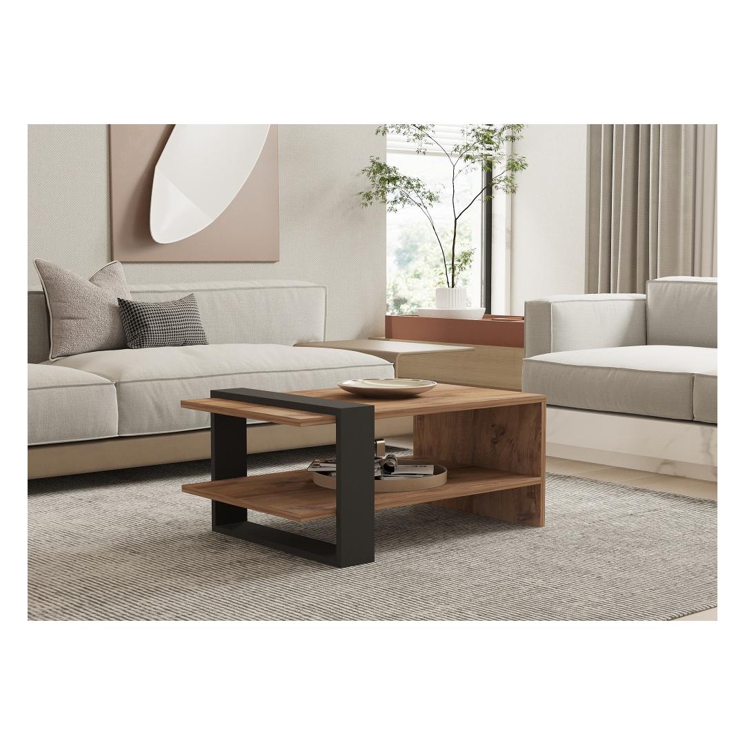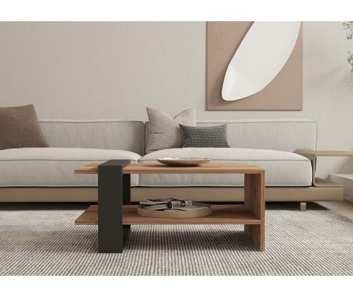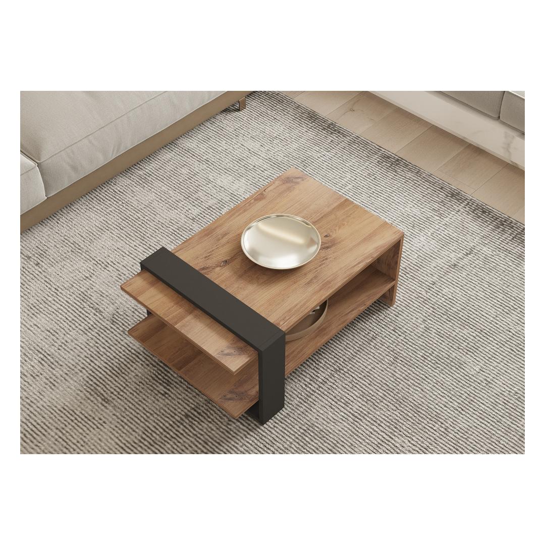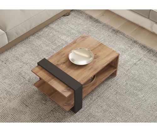 The combination of oak and anthracite colors gives this coffee table a unique and industrial look, making it a perfect addition to any contemporary or modern decor. Its 2-tier design adds an extra touch of functionality, allowing you to display your favorite decorative items or store your essentials with ease.