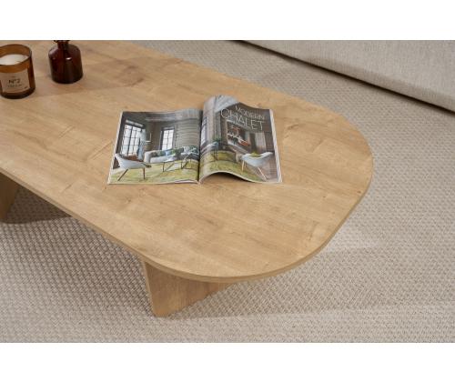 Muuda oma elutuba hubaseks ja kutsuvaks ruumiks meie kauni tamme kohvilaudadega. Valmistatud 100% melamiinkattega puitlaastplaadist, kiirgab see kohvilaud elegantsi ja rafineeritust. Rikkalik tamme värv lisab igasse ruumi soojust ja võlu, muutes selle ideaalseks keskpunktiks sinu kodus.Tõsta oma eluruumiLisa oma elutuppa modernse stiili puudutus selle stiilse ja elegantse kohvilaudaga. Selle puhtad jooned ja kaasaegne disain teevad sellest mitmekülgse mööblieseme, mis sobib igasuguse sisustusega. Olgu sa siis nautimas kohvi sõpradega või korraldamas filmiõhtut, on see kohvilaud sinu ruumi ideaalne täiendus.Kvaliteetne käsitööValmistatud kvaliteetsetest materjalidest, on see kohvilaud loodud kestma. 18mm paksune puitlaastplaat tagab vastupidavuse ja stabiilsuse, samas kui melamiinkate lisab kaitsekihti kriimustuste ja plekkide vastu. Sa saad nautida seda kohvilauda aastaid, muretsemata kulumise pärast.Avar ja funktsionaalneLaia 130 cm, kõrguse 40 cm ja sügavuse 65 cm juures pakub see kohvilaud piisavalt ruumi sinu lemmikraamatute, ajakirjade ja dekoratsioonide jaoks. Avardunud lauaplaat annab piisavalt ruumi jookide ja suupistete jaoks, muutes selle ideaalseks külaliste vastuvõtmiseks või iseseisvaks lõõgastumiseks.Tehnilised andmed:Materjal: 100% melamiinkattega puitlaastplaatPaksus: 18mmLaia: 130cmKõrgus: 40cmSügavus: 65cmVärv: Tamm Värv: Oak
