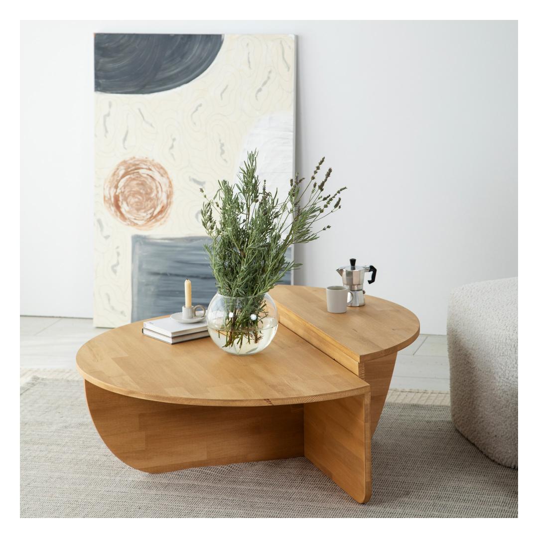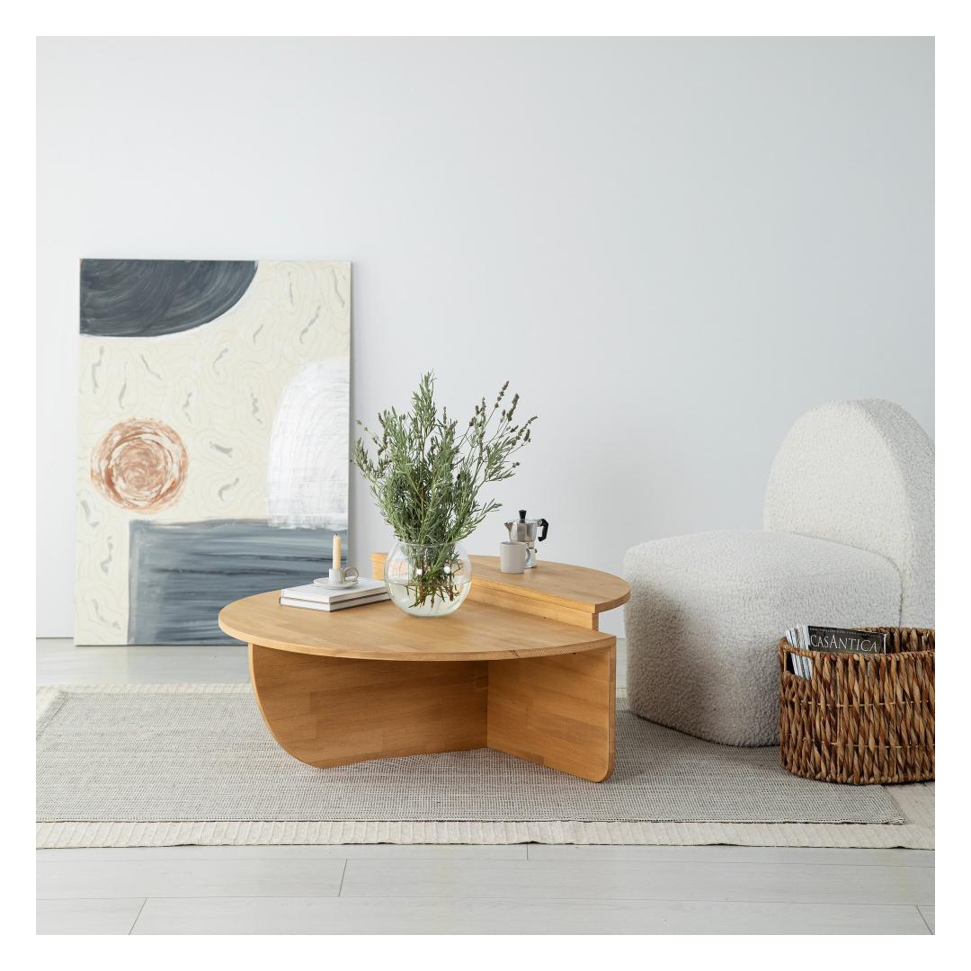 Esittelyssä upea sohvapöytäsarjamme, joka on intohimoisesti valmistettu ja suunniteltu sisustamaan asuintilasi. Tämä setti on valmistettu 100-prosenttisesti massiivisesta männystä, mikä takaa tyylikkyyden ja kestävyyden, ja se on arvokas lisä kotiisi tuleviksi vuosiksi. Verraton kauneus ja laatuTämä upea tamminen sohvapöydän setti sulautuu vaivattomasti mihin tahansa sisustukseen ja lisää eleganssia olohuoneeseesi. Massiivimännyn luonnolliset kuviot luovat ainutlaatuisen ja ajattoman ilmeen, mikä tekee jokaisesta kappaleesta todella ainutlaatuisen.Luo viihtyisä ilmapiiriSohvapöytä tarjoaa runsaasti tilaa suosikkikirjoillesi, -lehdillesi ja -kalusteillesi runsaiden mittojensa ansiosta (90 cm leveä, 30 cm korkea ja 60 cm syvä). Kaksi oheista sivupöytää (85 cm leveä, 30 cm korkea ja 35 cm syvä) tarjoavat lisää pinta-alaa, jossa voit esitellä rakkaimpia tavaroitasi tai lepuuttaa kahvikuppiasi rentoutuessasi pitkän päivän jälkeen. Tinkimätön käsityötaitoSohvapöytäsarjamme on ammattitaitoisten käsityöläisten huolellisesti käsityönä valmistama, mikä takaa, että jokainen yksityiskohta on viimeistelty täydellisesti. Massiivimäntypuurakenne takaa poikkeuksellisen lujuuden ja vakauden, joten voit nauttia tästä sarjasta huoletta vuosien ajan. Sohvapöydän mitat: 90 cm (leveys) x 30 cm (korkeus) x 60 cm (syvyys): 90 cm (leveys) x 30 cm (korkeus) x 60 cm (syvyys)Sivupöydän mitat: 90 cm (leveys) x 30 cm (korkeus) x 60 cm (syvyys). Syleile massiivimännyn lämpöä ja kauneutta ja nauti poikkeuksellisen käsityötaidon tuomasta ylellisyydestä. Tee kodistasi erottuva jo tänään! Väri: Tammi