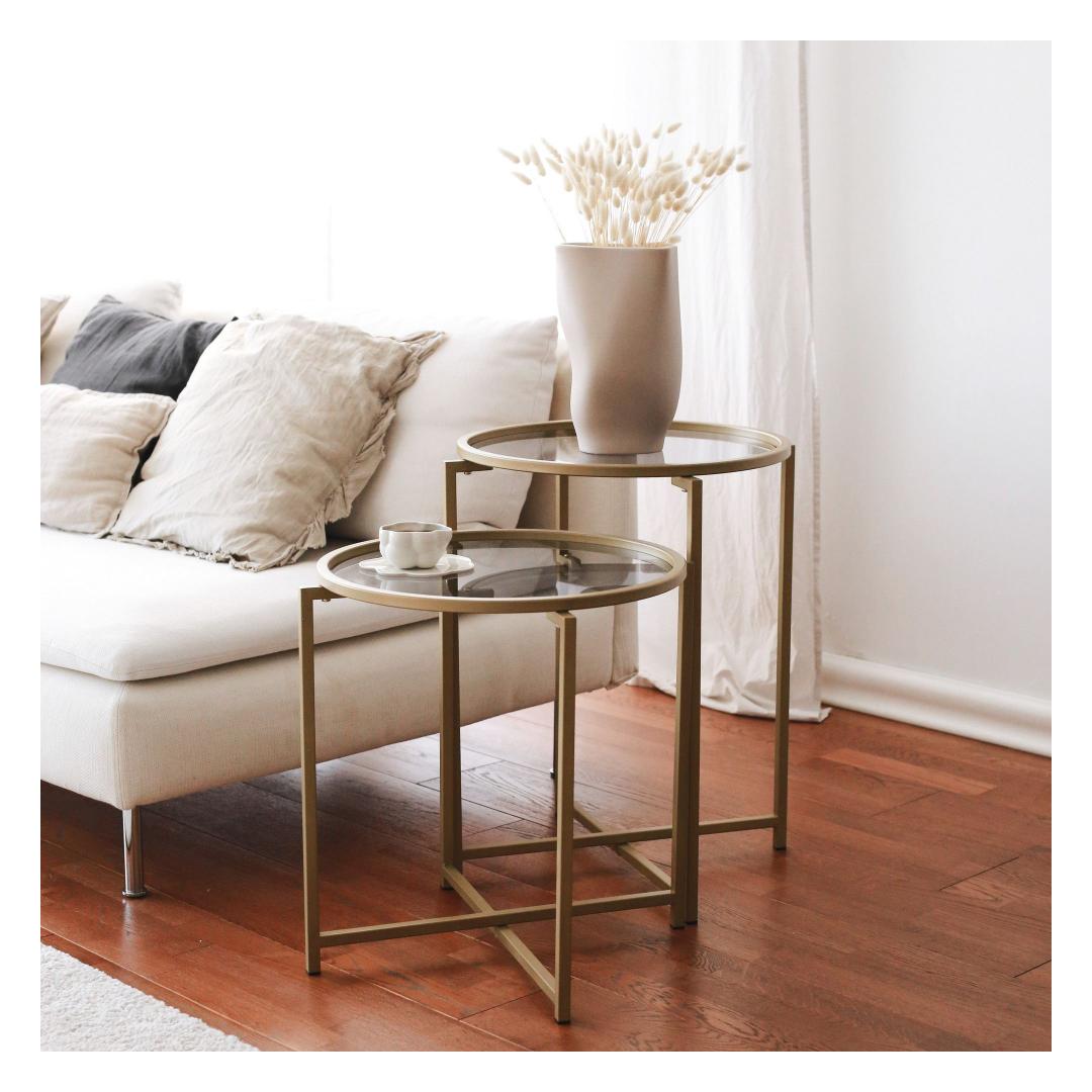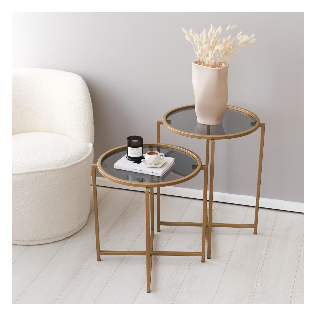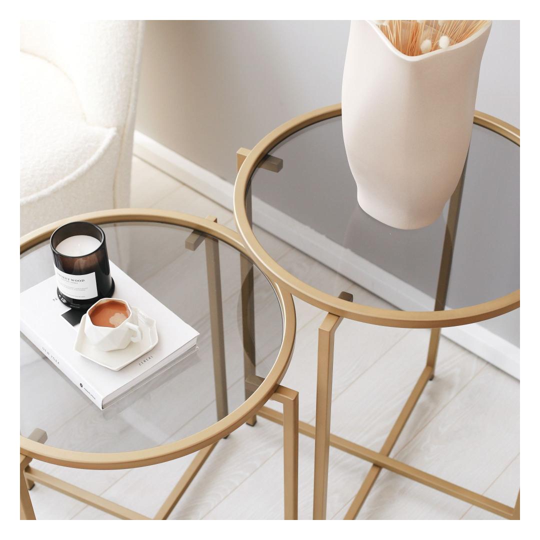 Esittelemme upean sohvapöytämme, todellisen mestariteoksen, joka parantaa minkä tahansa asuintilan tunnelmaa. Modernin ja innovatiivisen muotoilunsa ansiosta tämä pöytä on täydellinen yhdistelmä eleganssia ja toiminnallisuutta. Ilmaise tunteitasi Kuvittele siemailevasi aamukahviasi samalla kun katselet auringon lumoavaa heijastusta 100 % karkaistusta lasipinnasta. Lasin sileä ja tyylikäs rakenne herättää tunteen rauhallisuudesta ja tyyneydestä, luoden rauhallisuuden keidas kotiisi.Vapauta loistoTämä sohvapöytä on valmistettu äärimmäisen tarkasti, ja siinä on 100-prosenttinen metallirunko, joka takaa kestävyyden ja vakauden. Sähköstaattinen pulverimaalaus ja uunimaalaustekniikka antavat sille virheettömän viimeistelyn, joka lisää loistoa olohuoneeseesi. Ilmaise tyyliäTämän sohvapöydän kullan ja savun värien yhdistelmä huokuu hienostuneisuutta ja tyyliä. Kontrastisävyt luovat kiehtovan visuaalisen ilmeen, mikä tekee siitä minkä tahansa huoneen keskipisteen. Kompaktin kokonsa ansiosta (50 cm leveä, 60 cm korkea ja 50 cm syvä) se on monipuolinen esine, joka sopii saumattomasti mihin tahansa huoneeseen. Tekniset tiedot100 % karkaistua lasia kestävyyden ja turvallisuuden lisäämiseksi.4 mm:n paksuus tyylikkään ja nykyaikaisen ilmeen aikaansaamiseksi.100 % metallista valmistettu runko vakauden ja pitkäikäisyyden takaamiseksiElektrostaattinen pulverimaalaus ja uunimaalaus virheettömän viimeistelyn takaamiseksiLeveys: 50 cm, korkeus: 60 cm, syvyys: 50 cm.Väri: kultaa ja savuaVahvista sohvapöytämme ylellisyyttä ja eleganssia ja muuta olohuoneesi tyylikkääksi ja elegantiksi paratiisiksi. Tilaa nyt ja koe täydellinen sekoitus tunnetta, glamouria ja tyyliä kotiisi. Väri: Gold Fume