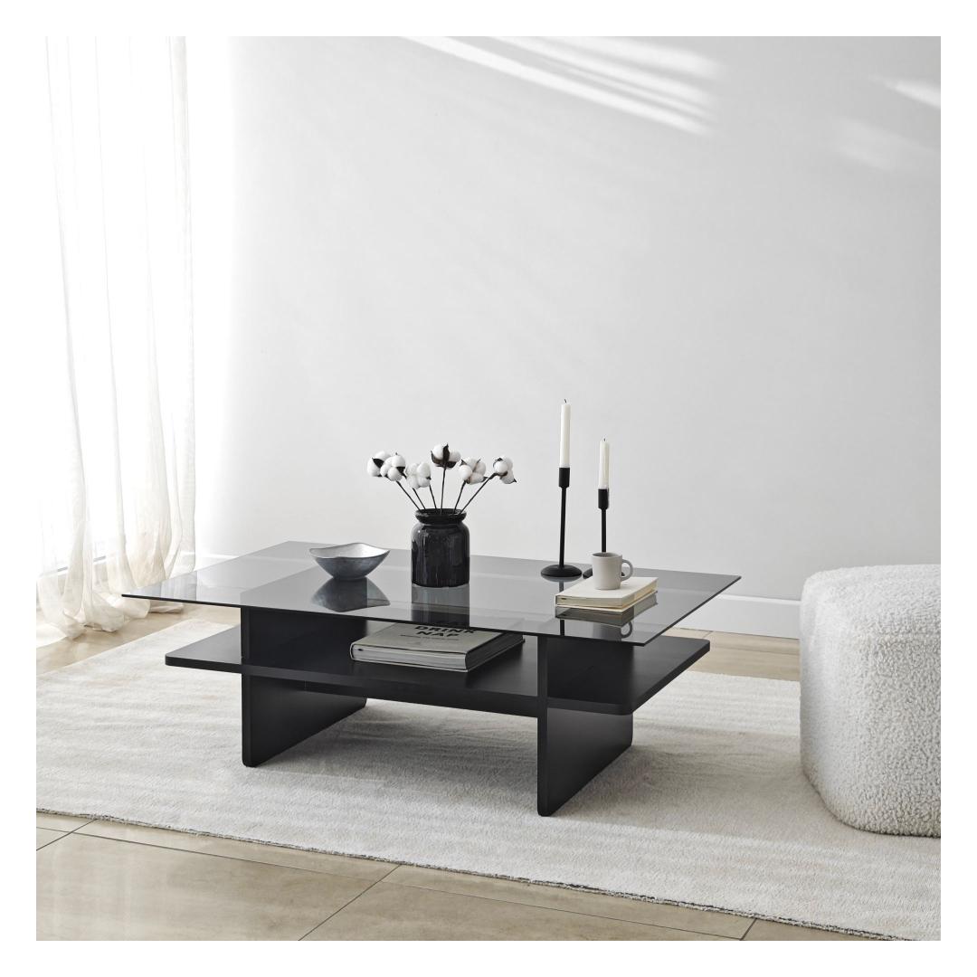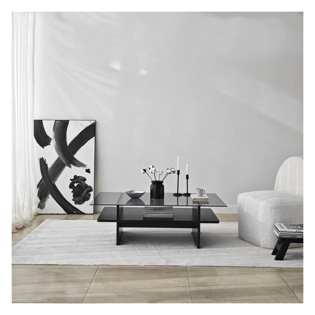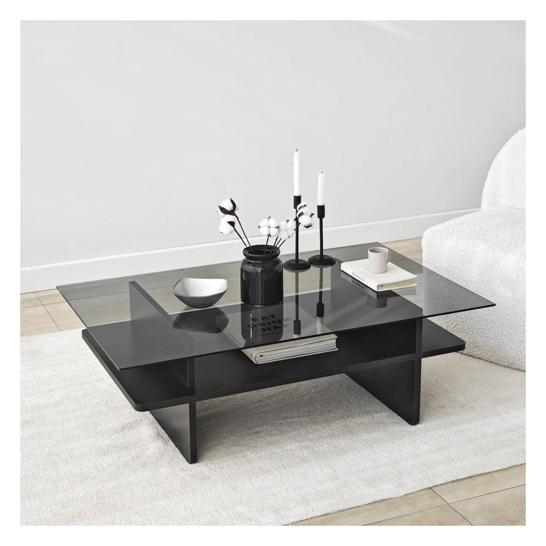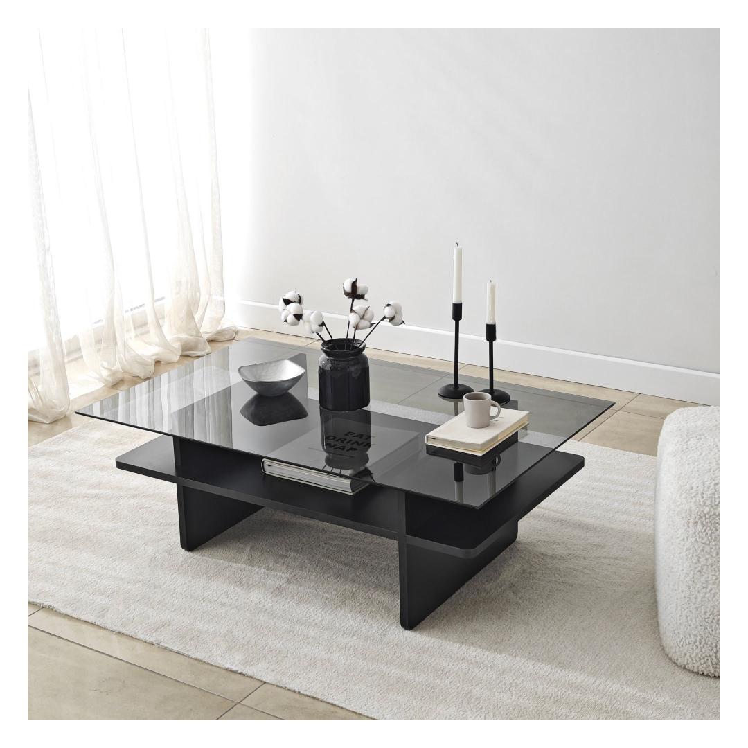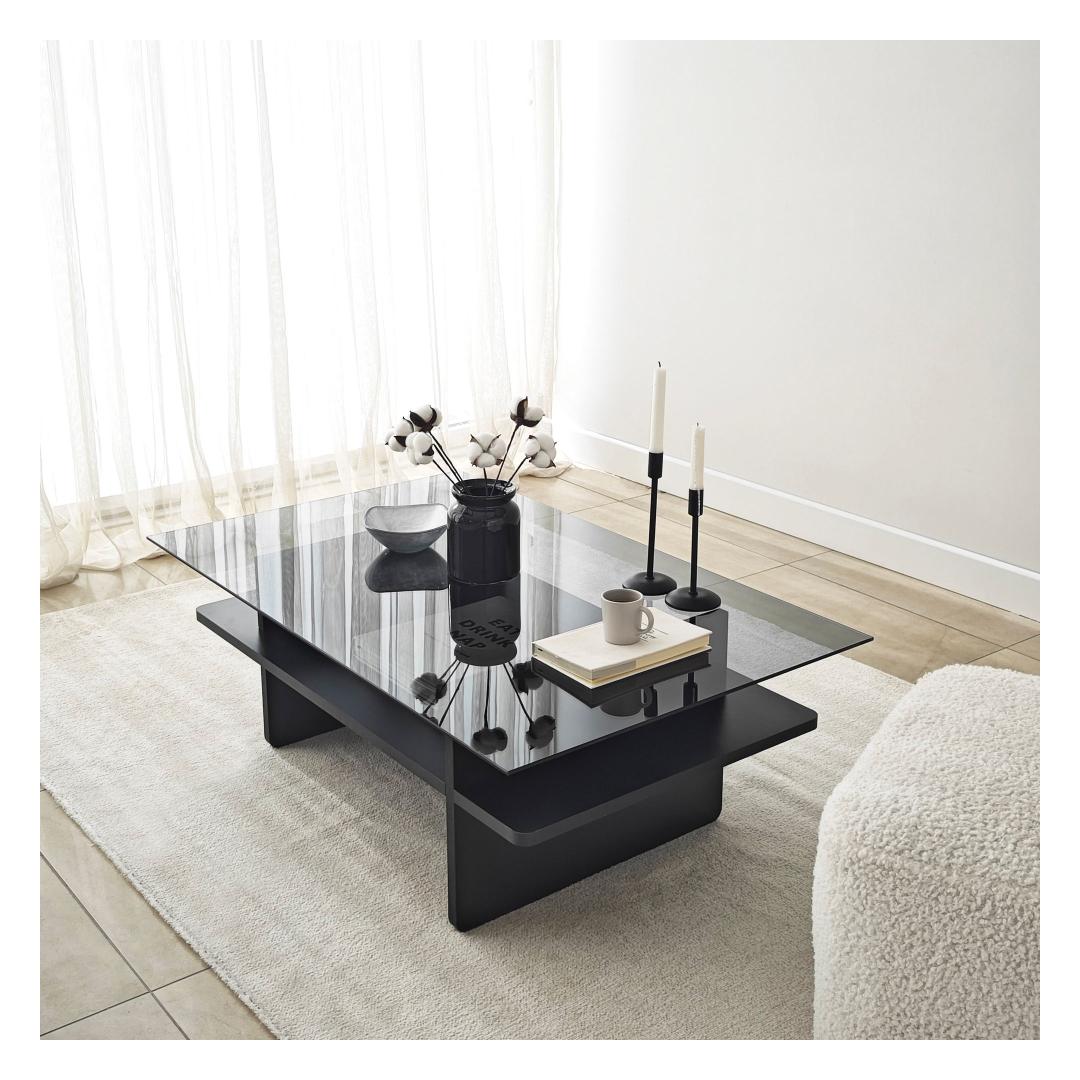Say goodbye to boring and outdated coffee tables - our glass coffee table is a statement piece that will impress your guests and make your space feel more luxurious. The combination of black and fume colors creates a striking contrast that will enhance the aesthetic of any room.