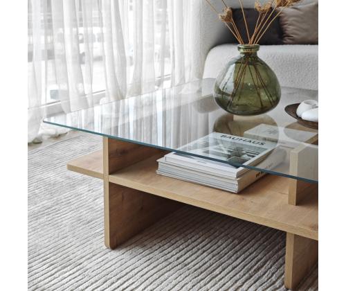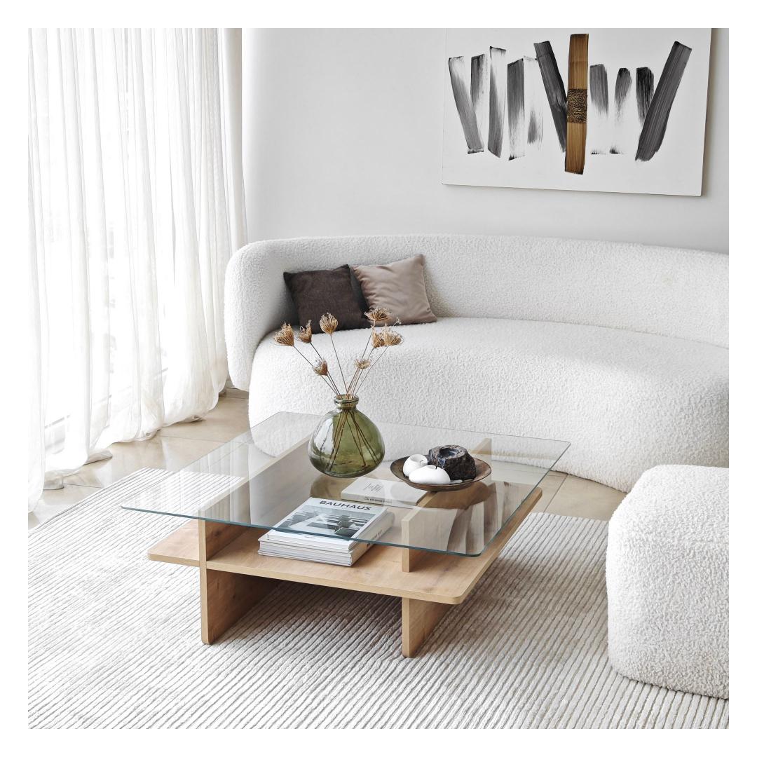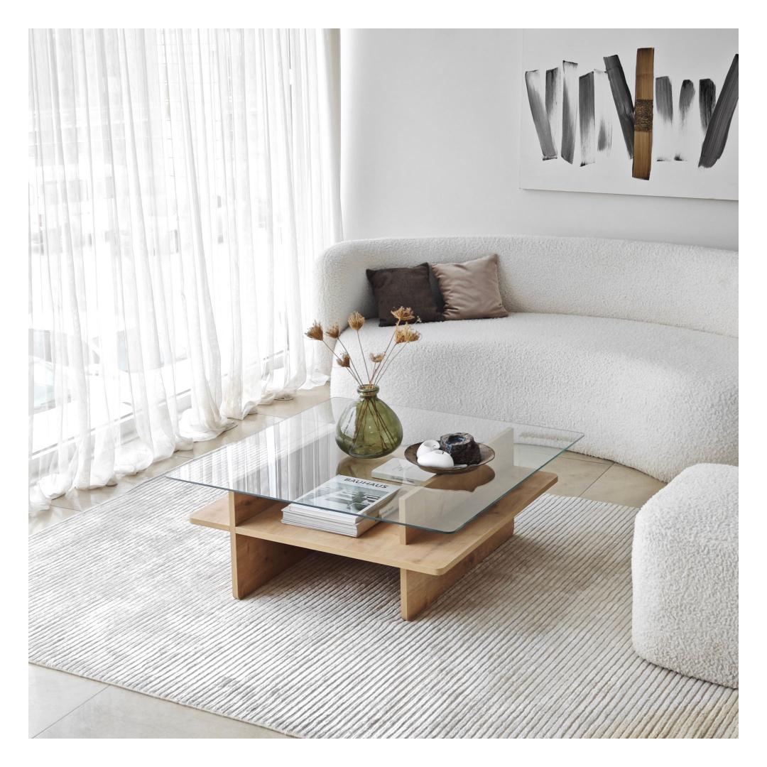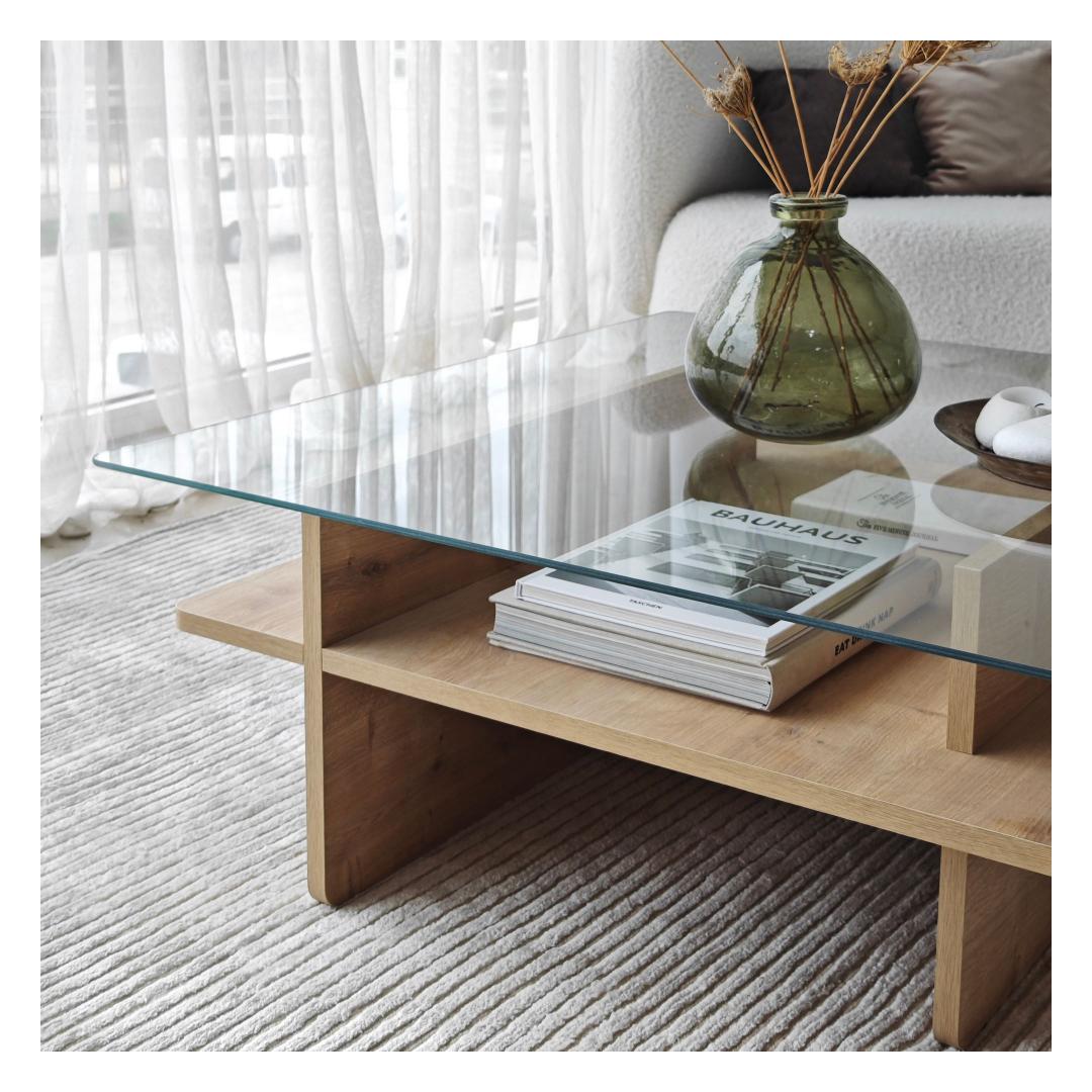 Crafted from 100% tempered glass and a frame made of 100% melamine coated particle board, this coffee table is built to last. The 18mm thickness ensures sturdiness and stability, while the PVC edgebanding adds a sleek finish to the design.