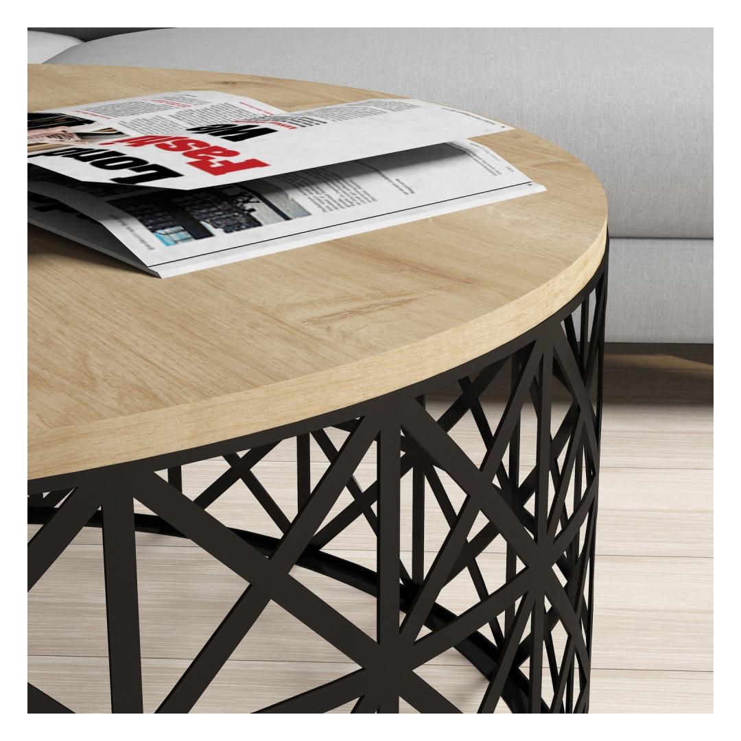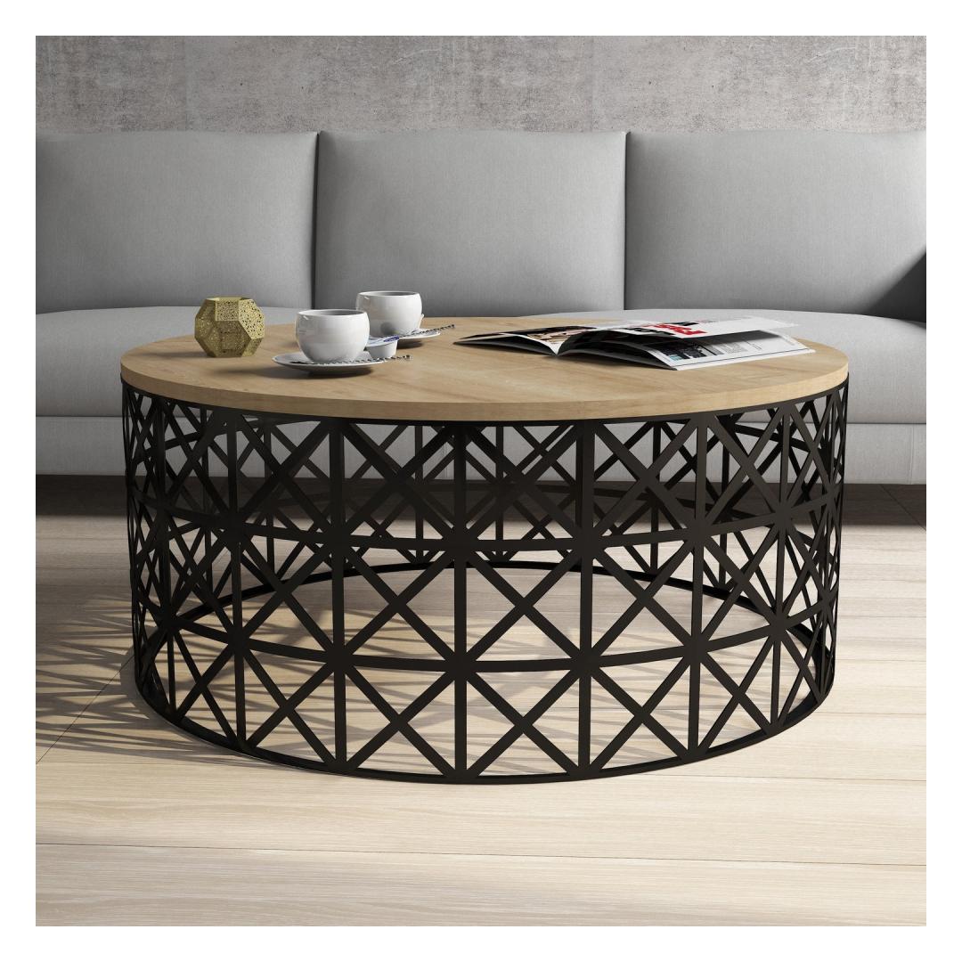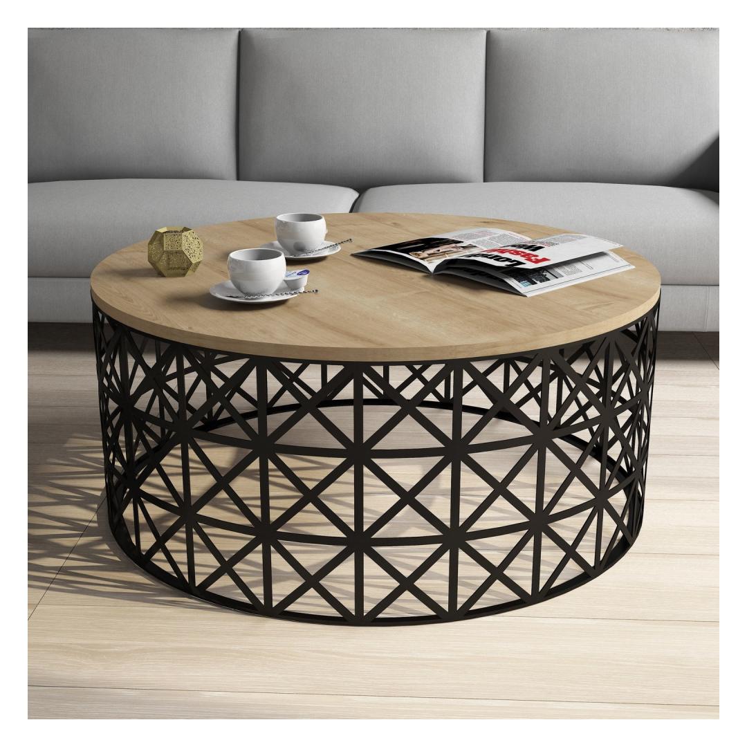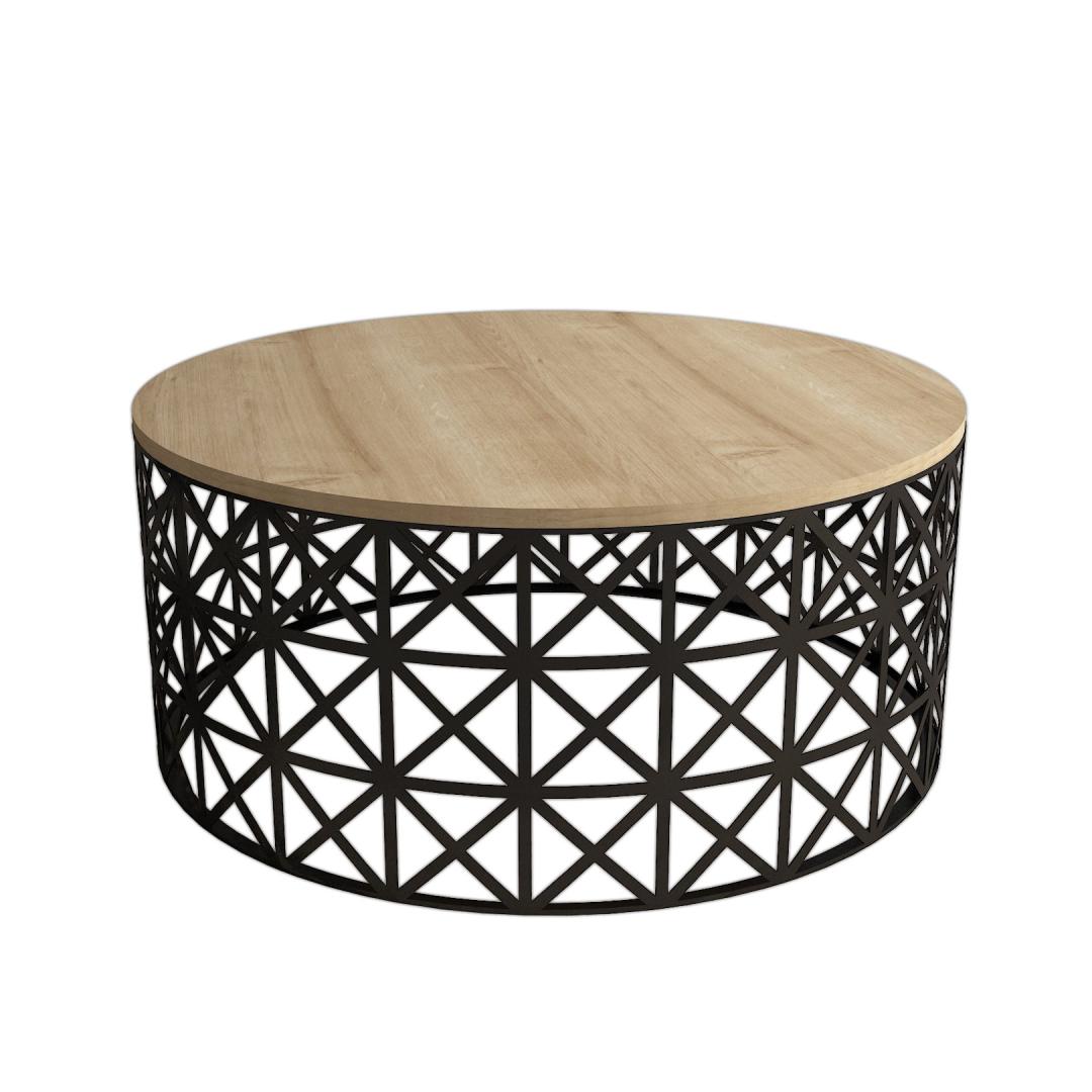 Featuring a unique combination of oak and black colors, our coffee table effortlessly blends with any interior decor. Whether you have a minimalist, industrial, or novelty-themed space, this coffee table will seamlessly complement your style. Its compact size of 90 cm width, 90 cm height, and 38 cm depth makes it ideal for both small and large living rooms.
