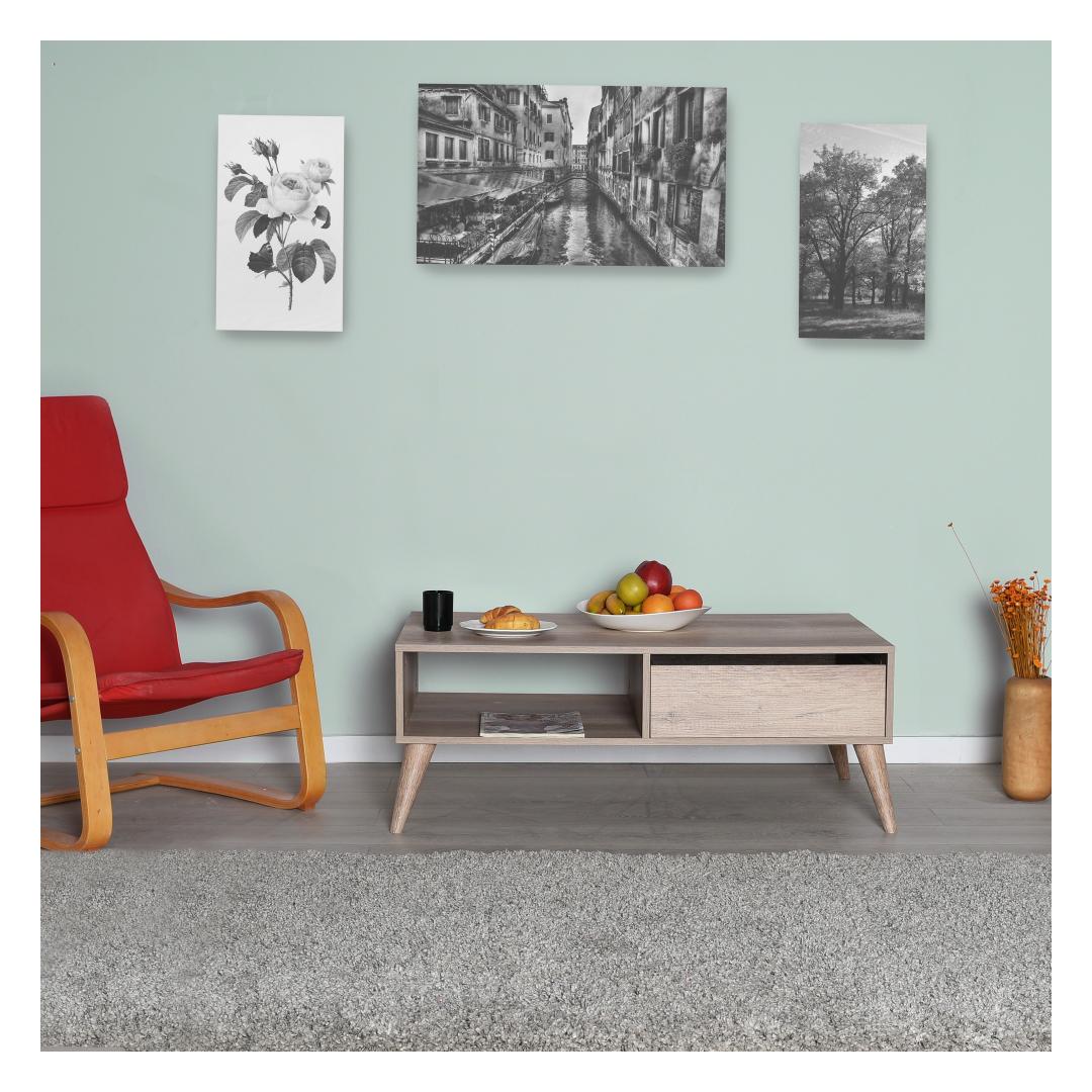 Tõstke oma elutuba meie suurepärase kohvilauda abilTutvustame meie uimastavat kohvilauda, mis on mõeldud teie elutuppa elegantsi ja funktsionaalsust tooma. See äärmiselt hoolikalt ja detailidele tähelepanu pöörates valmistatud kohvilaud on ideaalne täiendus igasse moodsasse koju. Võrratu kvaliteet ja vastupidavusMeie kohvilaud on valmistatud 100% melamiiniga kaetud puitlaastplaadist, mis on loodud kestma. 16 mm paksus tagab tugevuse ja stabiilsuse, mis võimaldab teil nautida selle ilu aastaid.Esteetiline atraktiivsus, mis ületab aegaSelle kohvilauda hele pähklivärv lisab teie eluruumile elegantsi. Selle ajatu disain sulandub vaevata mis tahes sisekujundusega, muutes selle mitmekülgseks esemeks, mis täiendab teie isiklikku stiili. Looge meeldejäävaid hetki koos lähedastegaKujutage ette, kuidas joote tassi kohvi oma lähedastega, kes on kogunenud selle suurepärase kohvilaua ümber. Selle avar 110 cm laiune laud pakub piisavalt pinda suupistete, jookide või isegi lauamängude paigutamiseks, muutes selle ideaalseks keskpunktiks meeldejäävate hetkede jaoks koos pere ja sõpradega. Muutke oma elutuba juba tänaVärskendage oma elutuba meie lummava kohvilaualauaga. Selle 42 cm kõrguse ja 65 cm sügavuse elegantsed mõõtmed tagavad, et see sobib sujuvalt igasse ruumi, mistõttu on see ideaalne valik korteritesse või suurematesse kodudesse. Tehnilised üksikasjad:Materjal: Materjal: Materjal: Materjal: Materjal: Materjal: Materjal: Materjal: materjal: 100% melamiiniga kaetud puitlaastplaatPaksus: 16mmLaius: 110cmKõrgus: 42cmSügavus: 65cmVärv: hele pähkelpuuÄrge jätke kasutamata seda võimalust muuta oma eluruumi. Tellige meie kohvilaud juba täna ja kogege stiili, vastupidavuse ja funktsionaalsuse täiuslikku segu. Värv: Light Walnut