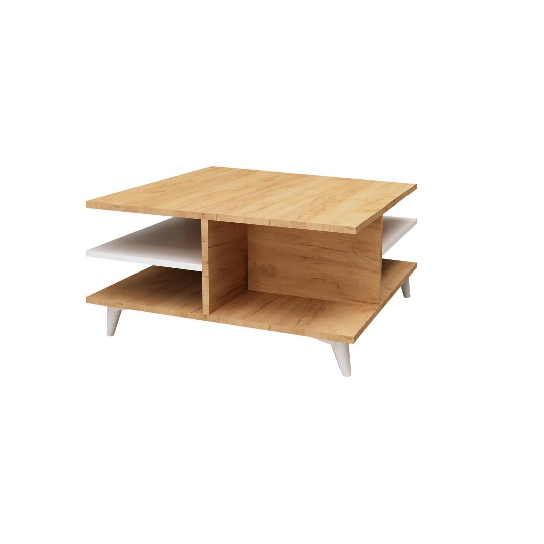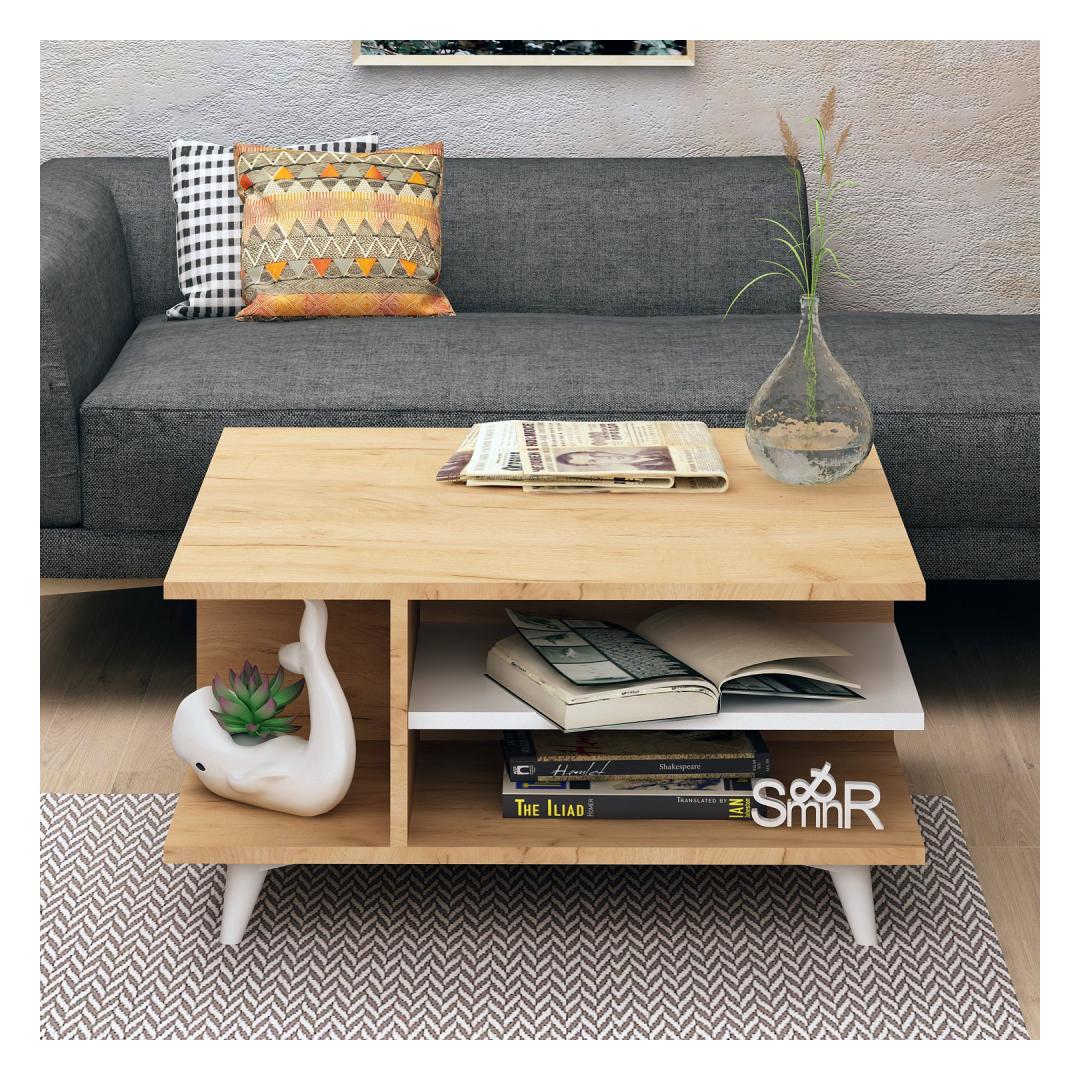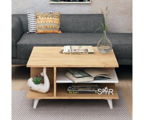 Crafted with utmost precision, this coffee table is made from 100% melamine coated particle board, ensuring durability and longevity. Its solid color concept, combined with the perfect blend of oak and white shades, creates a captivating visual appeal that will leave your guests in awe.