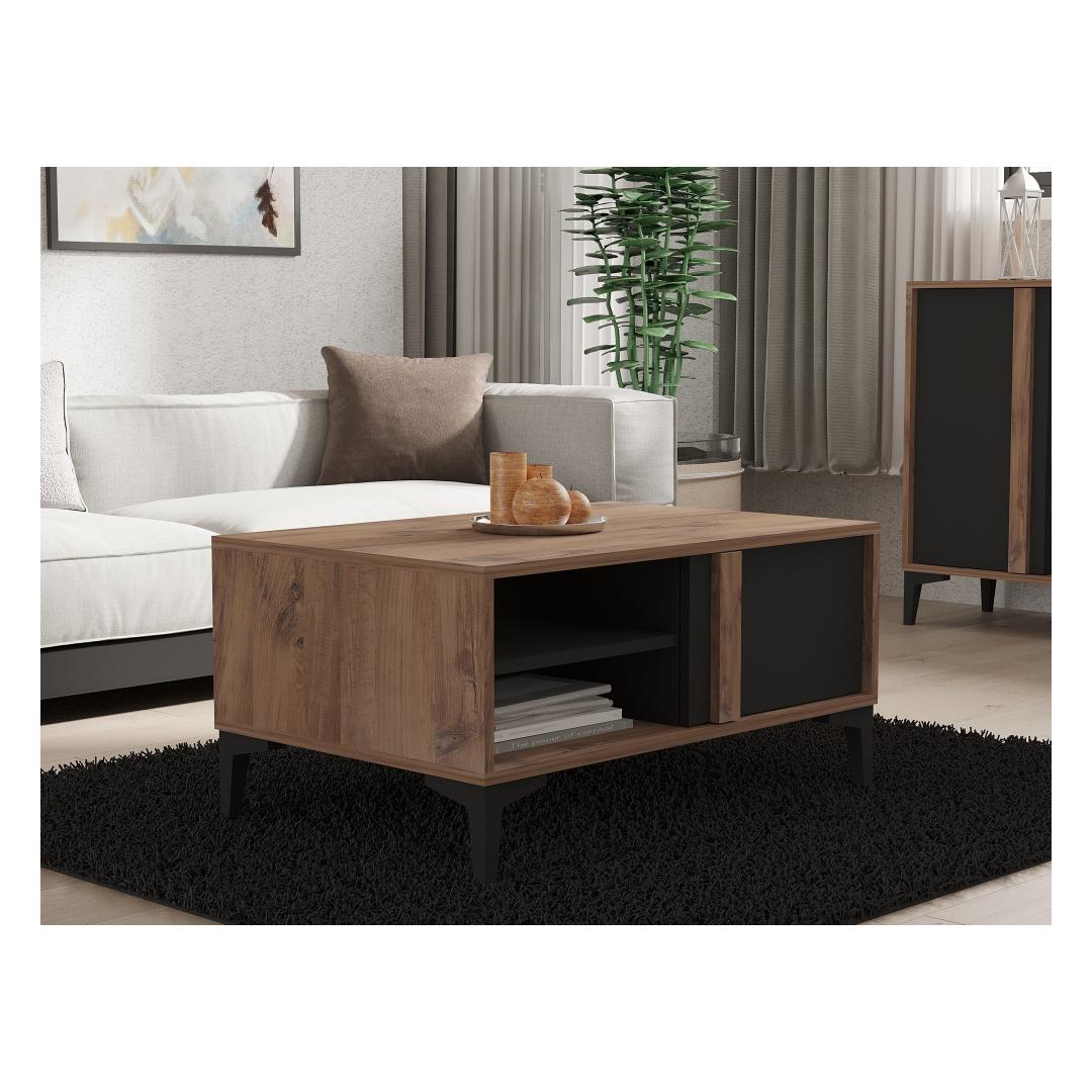 The coffee table features a captivating combination of Atlantic and Anthracite colors, creating a visually striking piece that effortlessly complements any existing decor. The contrasting hues add depth and character, making it a focal point in any room.