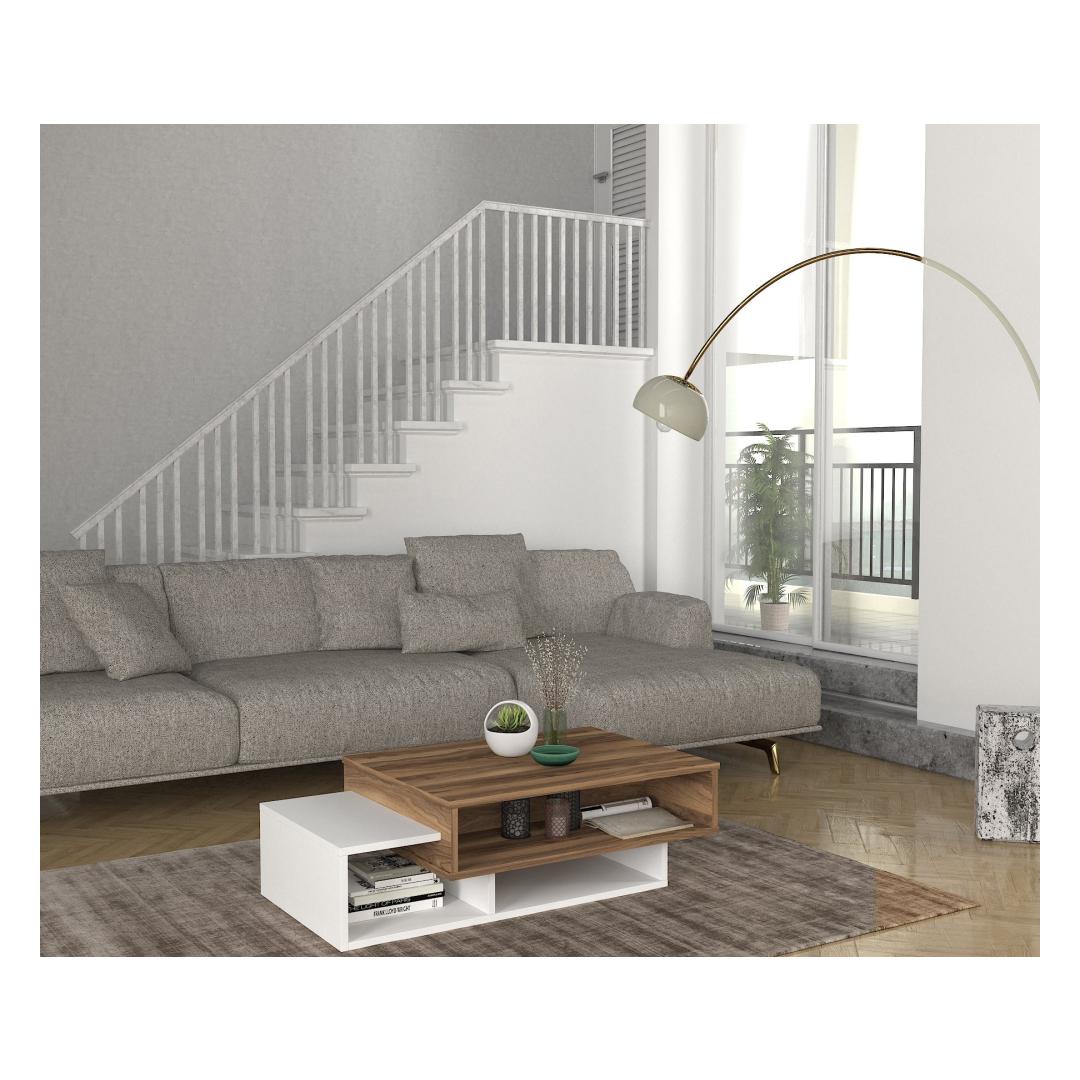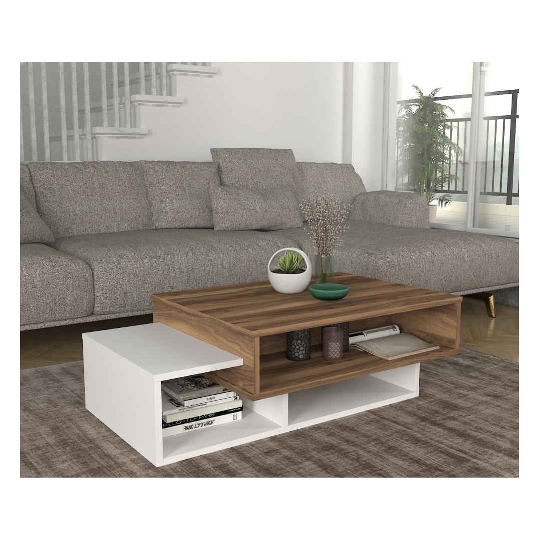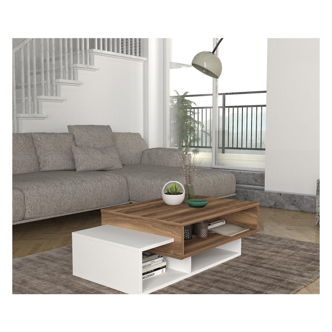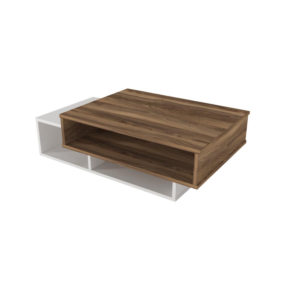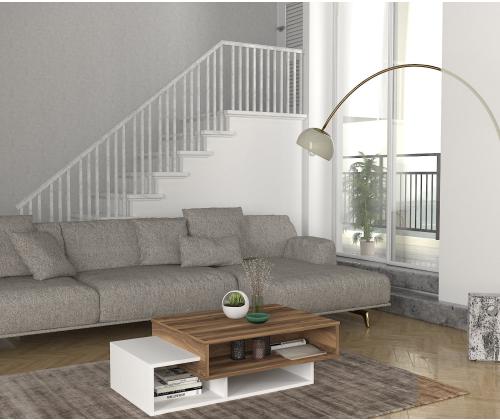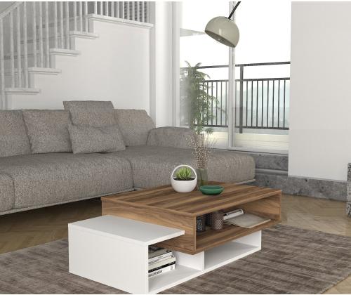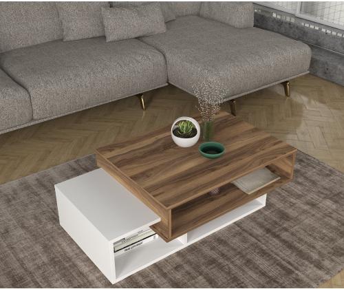 With its sleek and minimalist design, our coffee table adds a touch of sophistication to any room. The combination of white and walnut colors creates a harmonious contrast, making it a focal point of your decor.