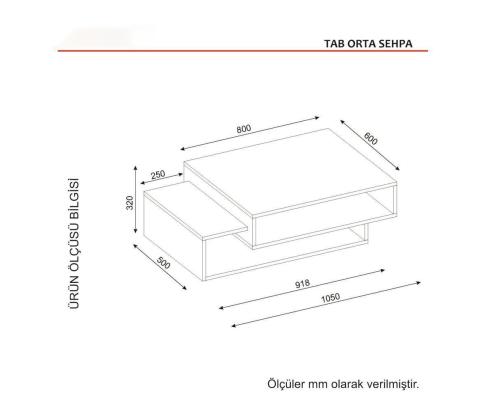 - Coffee Table Size: Width: 105 cm, Height: 32 cm, Depth: 60 cm