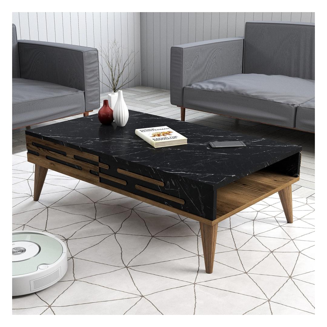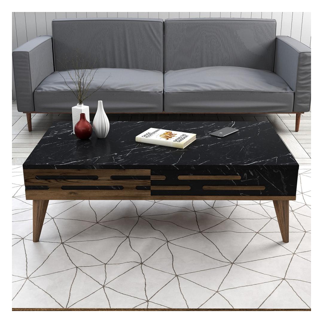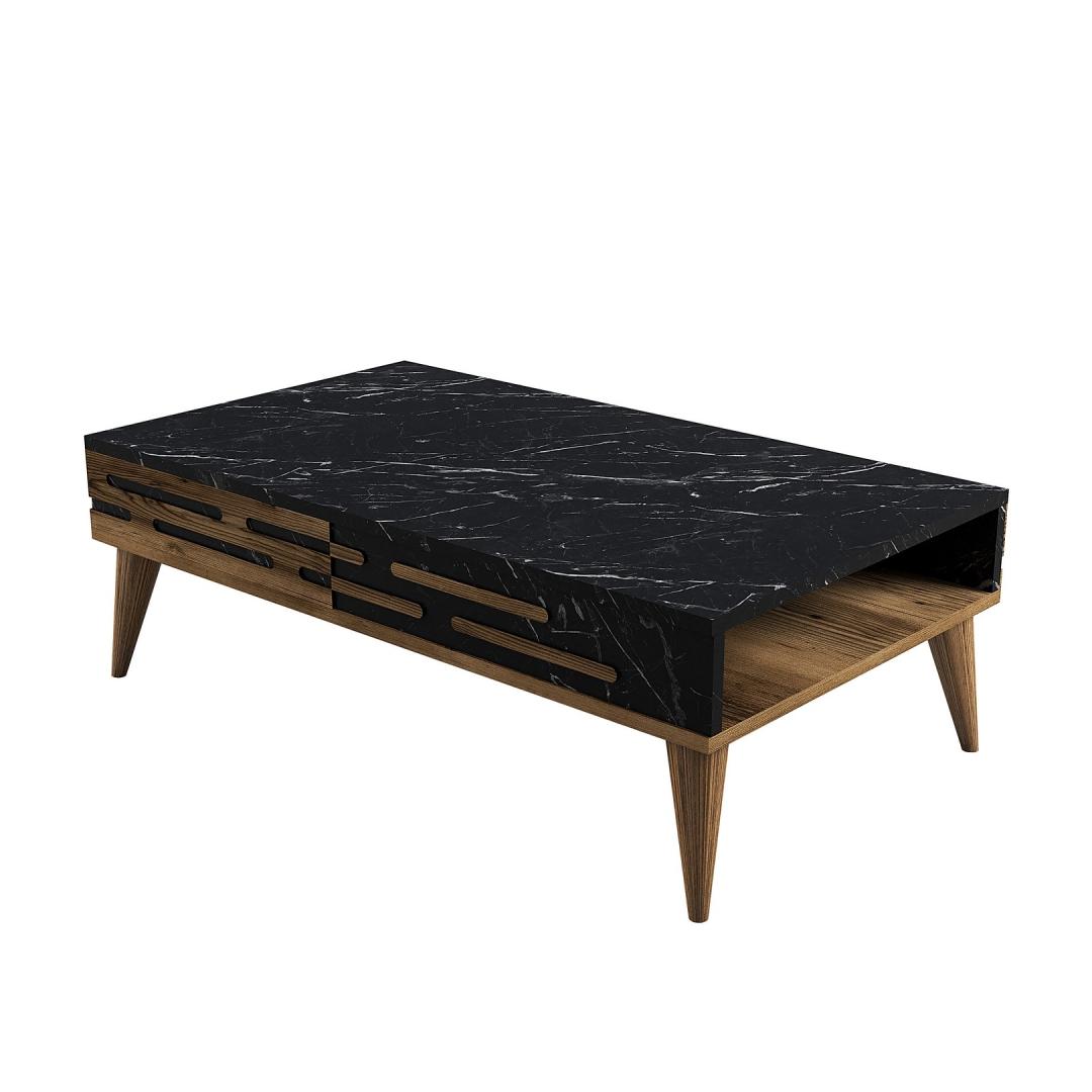 The combination of walnut, black, and marble colors adds a touch of elegance and sophistication to this already stunning piece. The contrasting hues create a visually striking effect that will instantly become the focal point of your living room, making a bold statement about your impeccable taste.