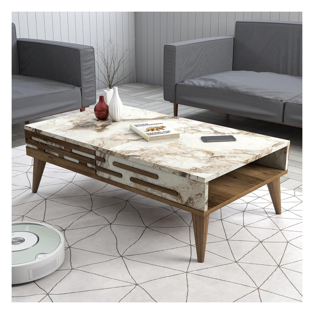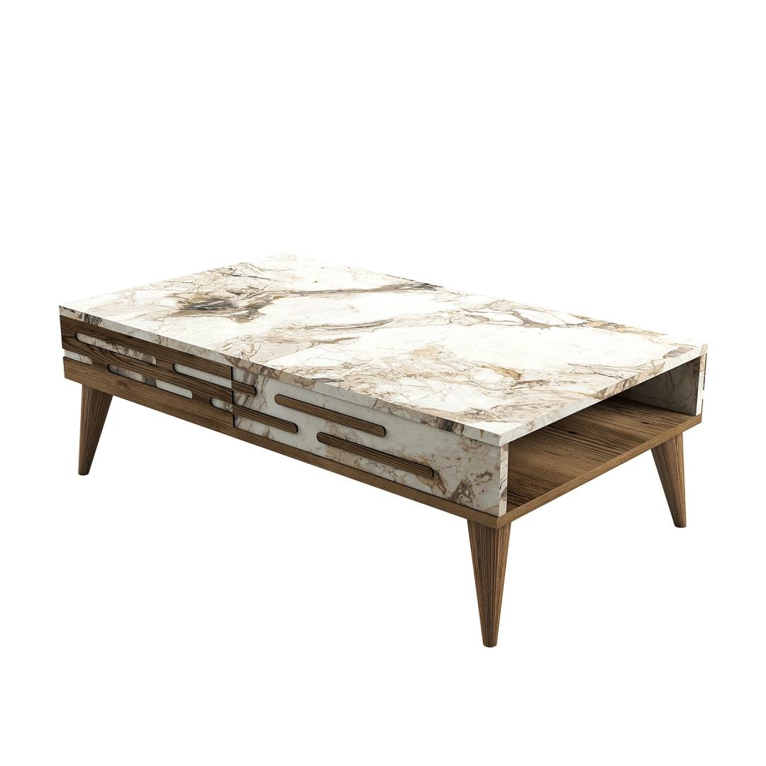 The combination of Walnut and White, along with the elegant Marble accents, creates a visually striking piece that exudes luxury and refinement. The contrasting colors add depth and character to your living room, making it a conversation starter among your guests.