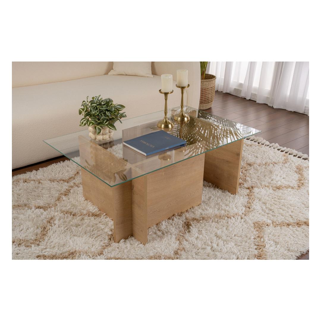 Tõstke oma eluruumi esile meie uimastava mee tamme kohvilaudadega. See 100% karastatud klaasist ja melamiiniga kaetud puitlaastplaadist raamiga valmistatud ese väljendab elegantsust ja rafineeritust. Stiilne disain ja soe mee tamme värv lisab igasse tuppa kohe luksust. Transformeeri oma ruumiÜtle hüvasti igavale kohvilaualauale ja tere tulemast väljapaistva eseme juurde, mis avaldab külalistele muljet ja tõstab teie kodu sisekujundust. Kaasaegne disain ja kvaliteetsed materjalid teevad sellest kohvilaudist kohustusliku eseme igasse stiilsesse koju. Kvaliteetne käsitööSee kohvilaud on valmistatud 100% karastatud klaasist ja tugevast melamiiniga kaetud puitlaastplaadist raamist, mis on ehitatud kestma. 18 mm paksus tagab vastupidavuse ja stabiilsuse, samal ajal kui mettamme tamme värv lisab teie elutuppa soojust. Tehnilised üksikasjad:Toote tüüp: Tugilaud, mis on valmistatud puidust ja värvitud, kuid mille puhul ei ole vaja teha muudatusi: KohvilaudMaterjal: Materjal: Materjal: Materjal: Materjal: Materjal: Materjal: Materjal: 100% karastatud klaas, 100% melamiiniga kaetud puitlaastplaat.Paksus: 18 mmMõõdud: 105 cm (laius) x 40 cm (kõrgus) x 65 cm (sügavus).Värv: mesi tamme Värv: Honey Oak