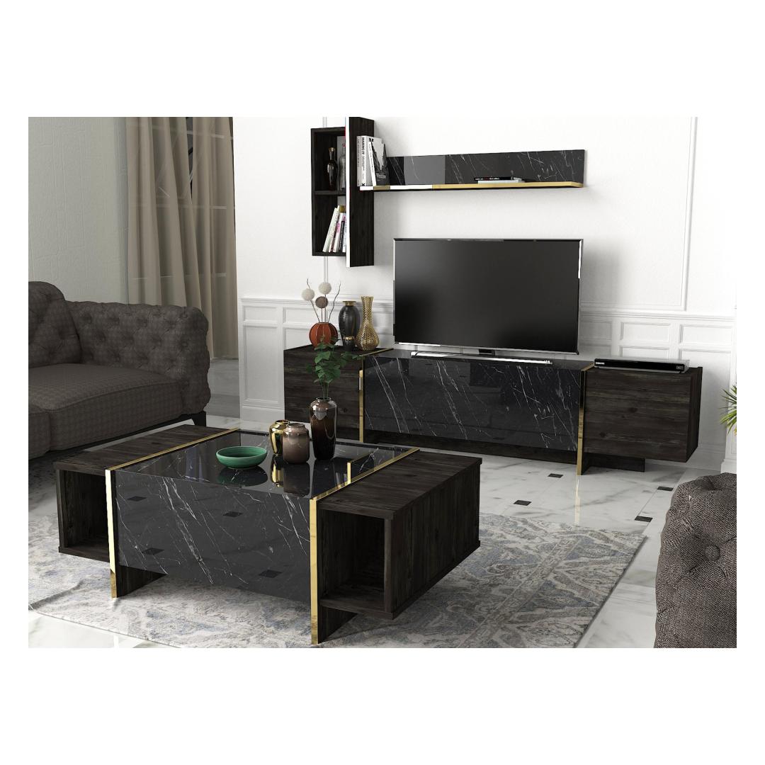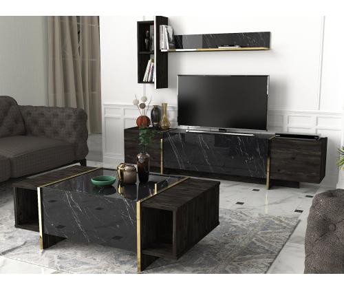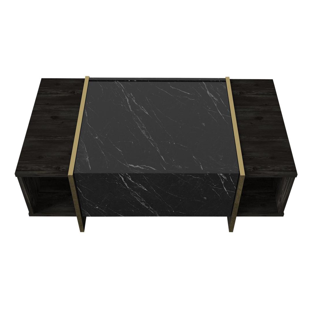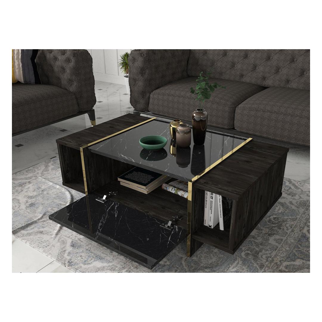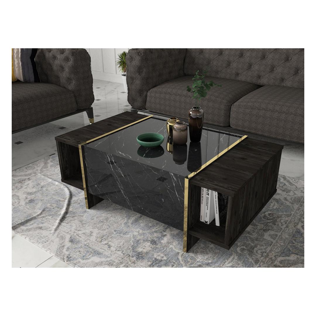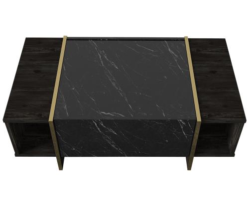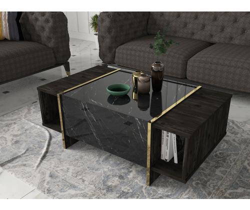 Transform your living space with our stunning Black and Gold Coffee Table. This modern and glamorous piece will instantly elevate the look of any room, adding a touch of luxury and sophistication.