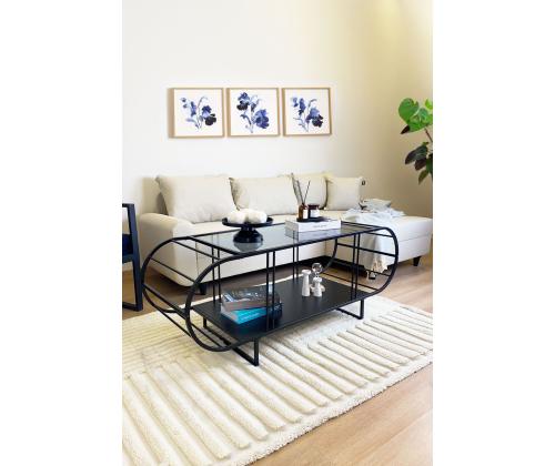 Crafted from 100% melamine coated black chipboard and a sturdy metal frame, this coffee table is built to last. The 18mm thick glass top adds a touch of luxury while ensuring durability and stability.