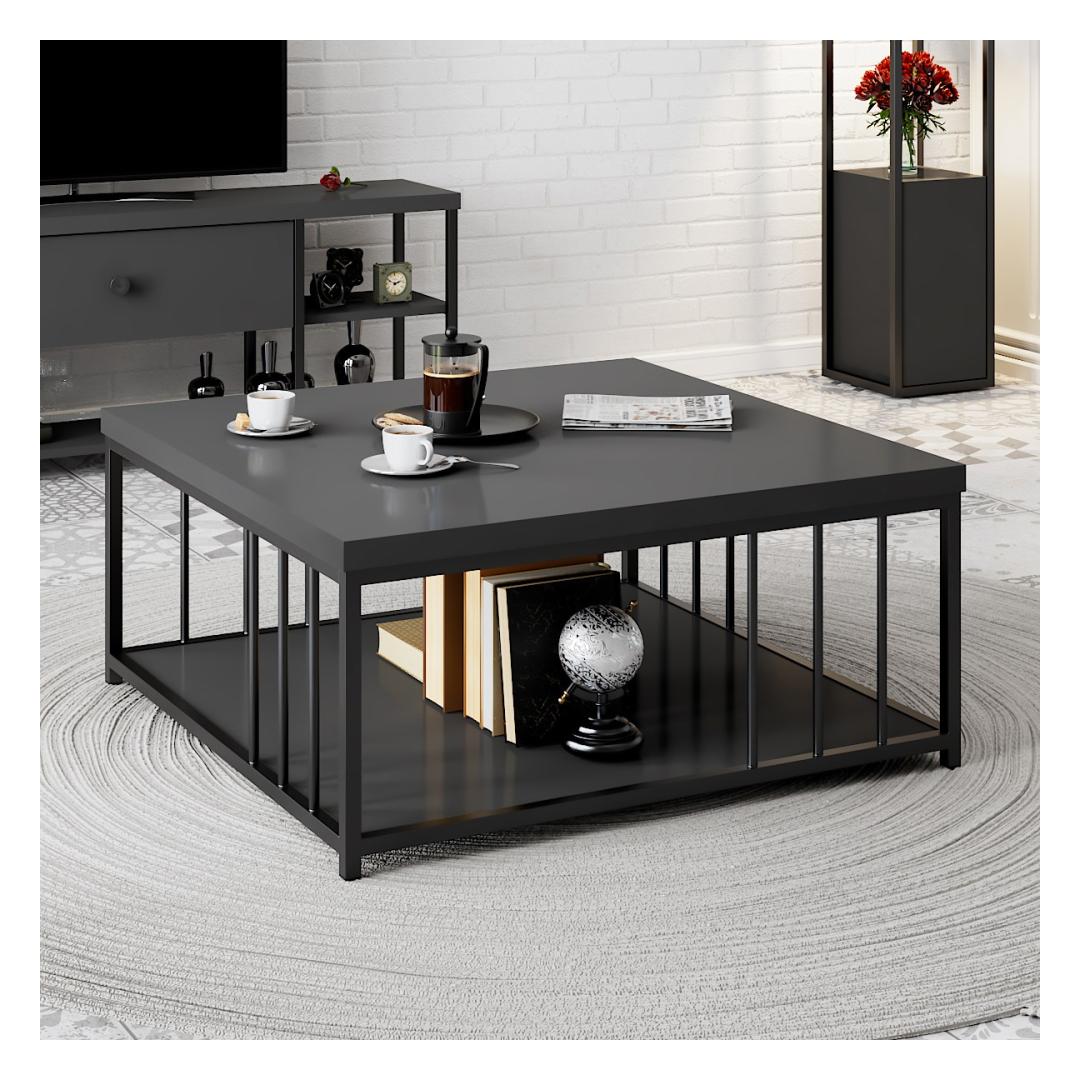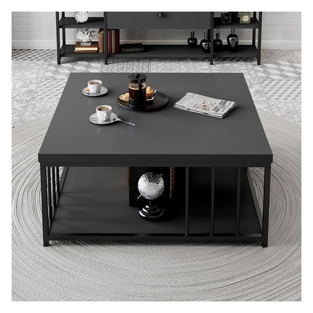 Featuring metal legs, this coffee table not only exudes contemporary charm but also offers exceptional stability and sturdiness. The combination of anthracite and black colors adds a touch of elegance and sophistication to any interior decor, effortlessly complementing a wide range of furniture styles.