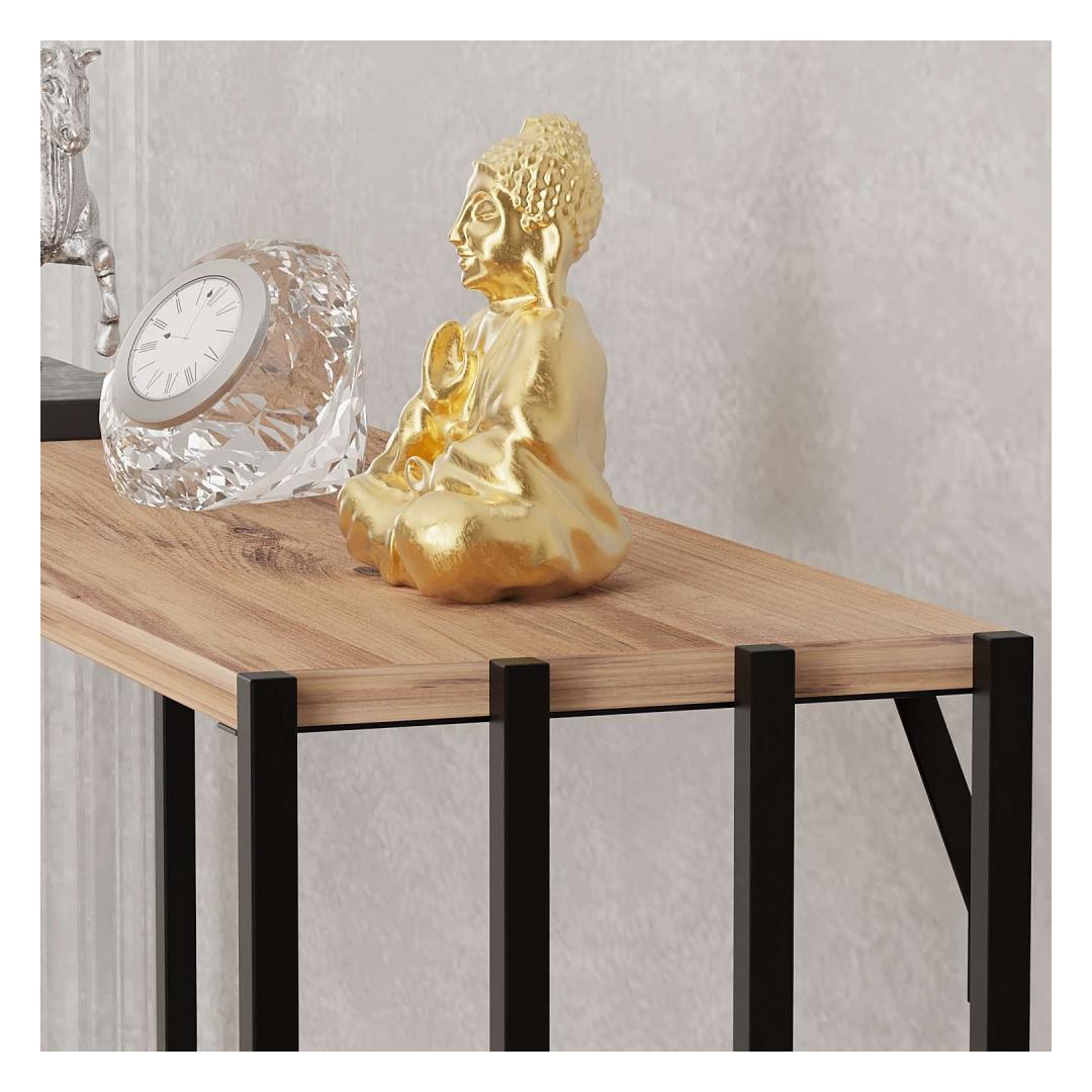 Muuda oma eluruum meie kauni kõrvalhoonega, mis on valmistatud kirglikult ja täpselt, et tuua elegantsi ja funktsionaalsust sinu koju. Sleek disain ja kaasaegne värvikombinatsioon mustast ja Atlandi männist tõstavad koheselt iga ruumi stiili, luues sooja ja kutsuva atmosfääri, mida sina ja sinu külalised armastate.Tõsta oma kodu sisekujundustLisa oma elutuppa, söögituppa või koridori natuke rafineeritust selle mitmekesise kõrvalhoonega, mis pakub piisavalt hoiuruumi kõigi sinu oluliste asjade jaoks. Olgu see siis sinu lemmik dekoratiivesemete väljapanekuks või oma asjade korrastamiseks, see kõrvalhoone kindlasti teeb igas ruumis mulje.Kvaliteetne käsitööValmistatud 100% melamiinkattega puitlaastplaadist ja tugeva metallraami abil, on see kõrvalhoone loodud kestma aastaid. 18mm paksus tagab vastupidavuse ja stabiilsuse, samas kui sleek disain lisab sinu kodu sisekujundusele kaasaegset stiili.Tehnilised andmed:Materjal: 100% melamiinkattega puitlaastplaatPaksus: 18mmRaam: 100% metallLaius: 90cmKõrgus: 74cmSügavus: 26cmVärv: Must ja Atlandi mändÄra jäta kasutamata võimalust täiustada oma eluruumi selle kauni ja funktsionaalse kõrvalhoonega. Tellige oma täna ja kogege, millist erinevust see teie kodus võib teha! Värv: Black Atlantic Pine