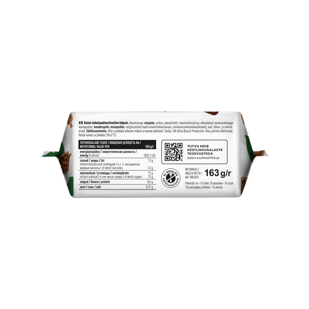 Keksit, jotka ovat olleet virolaisten pöydässä ja sydämissä jo vuosia. Kalevin klassinen resepti suklaanmakuisille kekseille sopii erinomaisesti leivontaan tai jälkiruokien valmistukseen tai kahvin tai teen kanssa nautittavaksi.