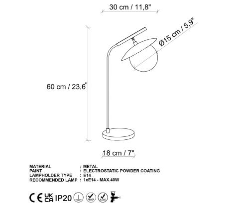 Socket Type: 1 x E 14 Max 40 W