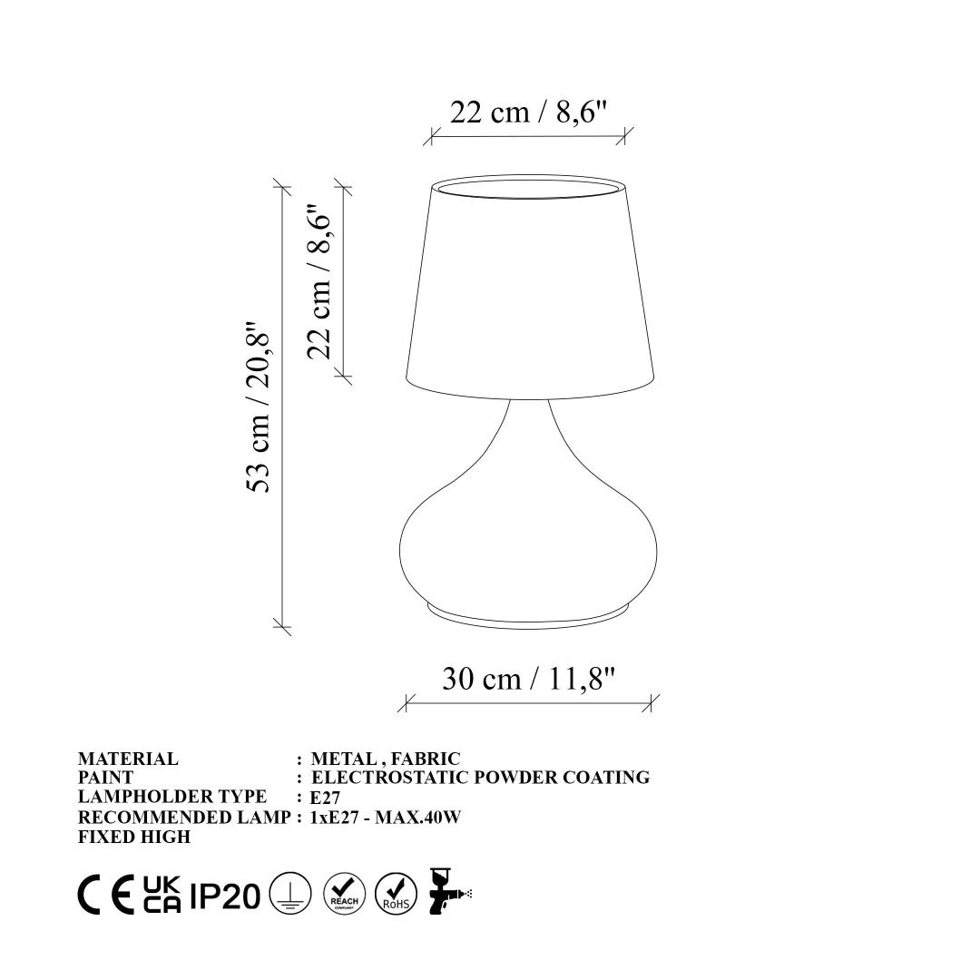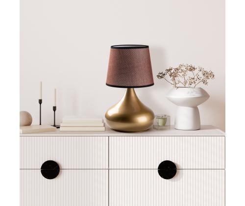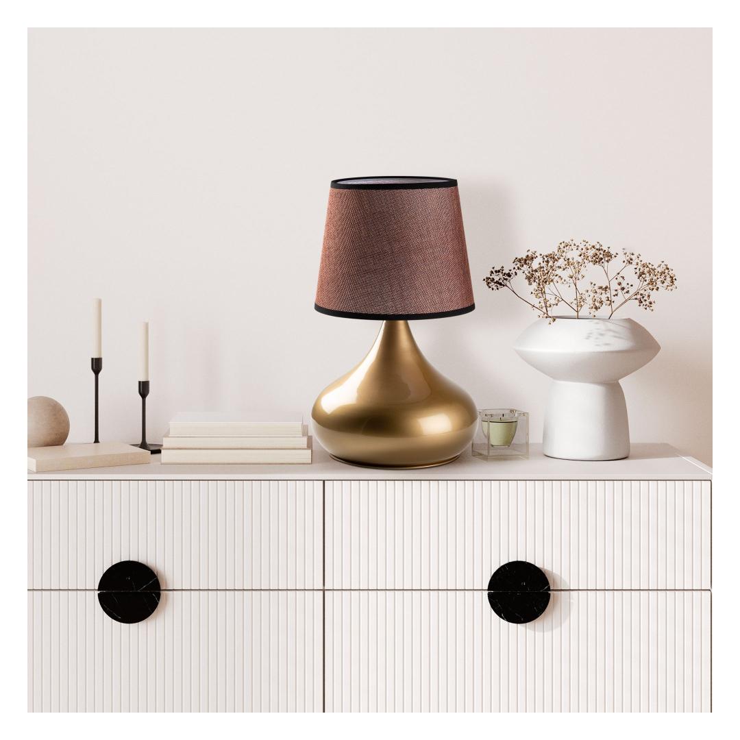 Valgustage oma ruumi elegantsi ja stiiliga meie hämmastava metallkorpusega laualambiga. Kuldse ja pruuni värvi kombinatsioon lisab igasse ruumi natuke rafineeritust, samas kui kangast kuppel pehmendab valgust, luues sooja ja kutsuva atmosfääri.Parandage oma sisustustSee laualamp ei ole mitte ainult valgusallikas, vaid ka statement-tükk, mis tõstab teie kodu sisustust. Sleek metallkorpus kiirgab modernsust, samas kui klassikaline kangast kuppel lisab ajatu võlu.Looge hubane atmosfäärOlgu te lugemas raamatut oma elutoas või töötamas oma laua taga, see laualamp loob hubase atmosfääri, mis paneb teid end koduselt tundma. Valguse soe kuma lõdvestab ja lohutab teid kohe pärast pikka päeva.Tehnilised andmed:Suurus: 30 x 30 x 53 cmKuppli suurus: Ø22-28 h:22 cmKabli pikkus: 200 cmOn/Off lüliti kaablilPesatüüp: 1 x E 27 Max 40 WPirn ei ole kaasas220-240 VIP kood: IP20Ärge jätke kasutamata võimalust lisada oma ruumi luksuse puudutus meie metallkorpusega laualambiga. Tellige oma täna ja muutke oma kodu stiili ja mugavuse pelgupaigaks. Värv: Gold Brown