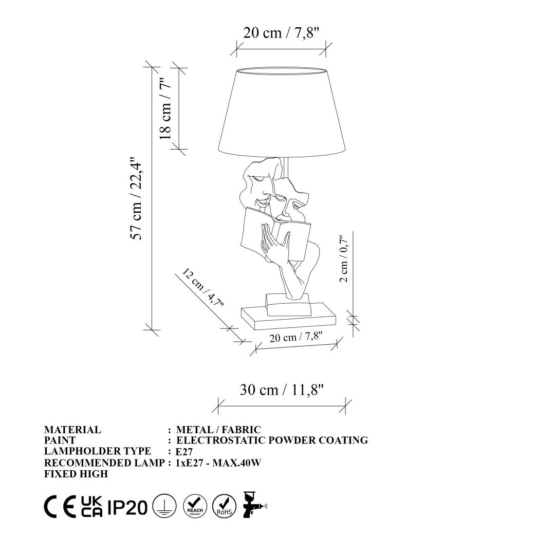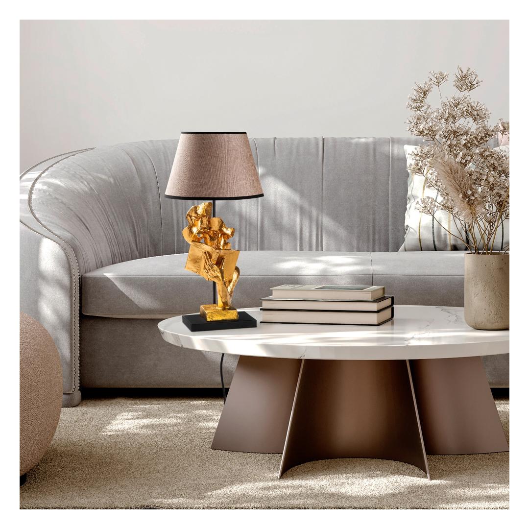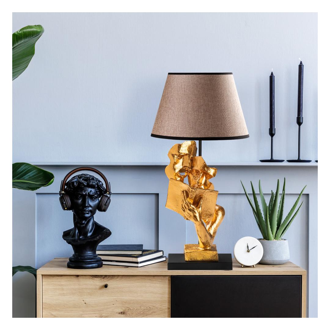 Valgustage oma ruumi meie kauni lauavalgusti sooja ja kutsuva kuma abil. Valmistatud kaunistest kuld- ja heledat pruunist kangast, kiirgab see lamp elegantsi ja rafineeritust.Lisage igasse ruumi luksuse puudutusOlgu teie eesmärgiks luua hubane lugemisnurk või lisada oma elutuppa luksuse puudutus, on see lauavalgusti ideaalne valik. Selle voolujooneline disain ja pehme valgustus muudavad selle ideaalseks sooja ja kutsuva atmosfääri loomiseks igas ruumis.Kvaliteetne käsitöö ja disainValmistatud 100% polüestrist kangast ja tugeva alusega, on see lamp mitte ainult stiilne, vaid ka vastupidav. Korgi suurus Ø20-30 h:18 cm tagab, et see sobib igasse ruumi, samas kui 220-240 V pistikupesa tüüp võimaldab lihtsat paigaldamist.Tehnilised andmed:Materjal: 100% polüestrist kangasSuurus: 30 x 30 x 57 cmKorgi suurus: Ø20-30 h:18 cmPistikupesa tüüp: 1 x E 27 Max 40 WPirn ei ole kaasasPinget: 220-240 VIP kood: IP20Värv: Kuldne ja heledat pruun Värv: Gold Light Brown