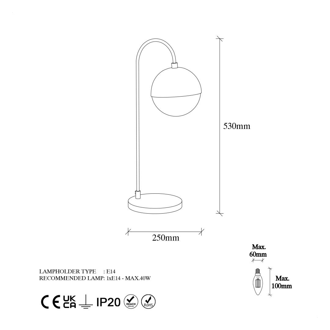 Introducing our exquisite Table Lamp, a perfect blend of modernity and sophistication. Crafted with a sleek metal body, this lamp exudes a sense of luxury and refinement. Its captivating glass cap adds a touch of glamour, creating a stunning focal point in any room.