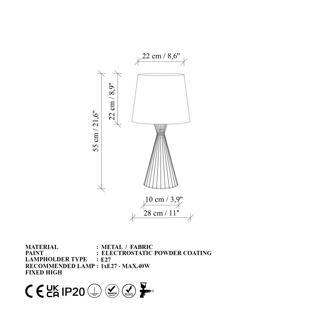 Valgustage oma ruumi elegantse ja modernse metallkorpusega lauavalgustiga. See hämmastav lamp omab sujuvat metallkorpust koos kangast kattega, luues sooja ja kutsuva atmosfääri igas toas. Stiili ja funktsionaalsuse ideaalne kombinatsioon, see lamp lisab teie kodu sisustusele peenust.Peen DisainMetallkorpusega lauavalgusti uhkeldab kaasaegse disainiga, mis täiustab igat ruumi teie kodus. Metallkorpus lisab modernset hõngu, samas kui kangast kate pehmendab valgust, luues hubase õhkkonna. Olgu see öölaual, kirjutuslaual või elutoa kõrvallaual, see lamp kindlasti tõmbab tähelepanu.Soe ja Kutsuv Sära1 x E 27 Max 40 W sokli tüübiga lamp pakub just õige koguse valgust lugemiseks, töötamiseks või lõõgastumiseks. Must ja heledat pruun värvikombinatsioon lisab teie ruumile soojust, luues tervitava keskkonna teile ja teie külalistele.Tehnilised Üksikasjad:Suurus: 28 x 28 x 55 cmKatte suurus: Ø22-28 h:22 cmSokli tüüp: 1 x E 27 Max 40 WPirn ei ole kaasasPinge: 220-240 VIP kood: IP20Värv: Must ja Heledat Pruun Värv: Black Light Brown