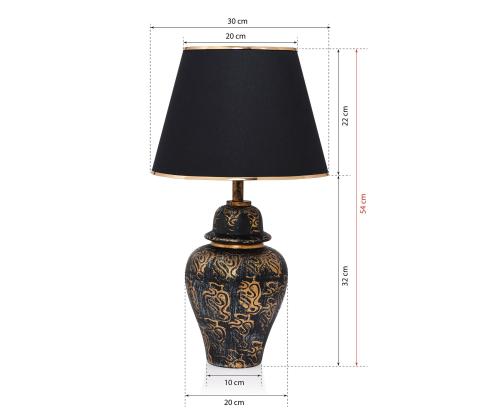 Valgustage oma ruumi elegantsi ja stiiliga meie kauni keraamilise lauavalgustiga. Keraamilise korpuse keeruline disain lisab igasse ruumi peenust, samas kui kangast kuppel pehmendab valgust, luues sooja ja kutsuva atmosfääri.Elegantne disainKuldse ja musta värvi kombinatsioon loob luksusliku ilme, mis tõstab teie kodu sisustust. Selle lauavalgusti sujuv ja kaasaegne disain sobib igasuguste stiilidega, alates kaasaegsest kuni traditsioonilise.Mitmekesine valgustusKuppli laius on 20 cm ja kõrgus 54 cm (koos kupliga), mistõttu on see lauavalgusti ideaalne suurus öölauale, kirjutuslauale või kõrvalauale. 30 cm laius kuppel tagab laia valguse leviku, muutes selle ideaalseks lugemiseks või hubase atmosfääri loomiseks.Kergesti kasutatavE27 pesatüüp võimaldab hõlpsat 40W pirni paigaldamist, pakkudes piisavalt valgust igaks ülesandeks. Lihtsalt ühendage see vooluvõrku ja lülitage sisse, et saada kohene valgustus.Lisage oma koju luksuse puudutus meie keraamilise lauavalgustiga. Olgu teie eesmärgiks tumeda nurga valgustamine või sisustuse viimistlemine, see lamp on ideaalne valik.Tehnilised andmed:Materjal: Keraamiline korpus, kangast kuppelLaius: 20 cmKõrgus: 54 cm (koos kupliga)Kuppli laius: 30 cmPesatüüp: E27Maksimaalne võimsus: 40WVärvid: Kuldne ja must Värv: Gold Black