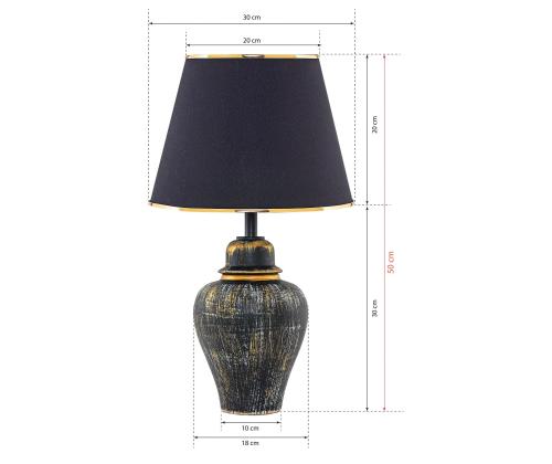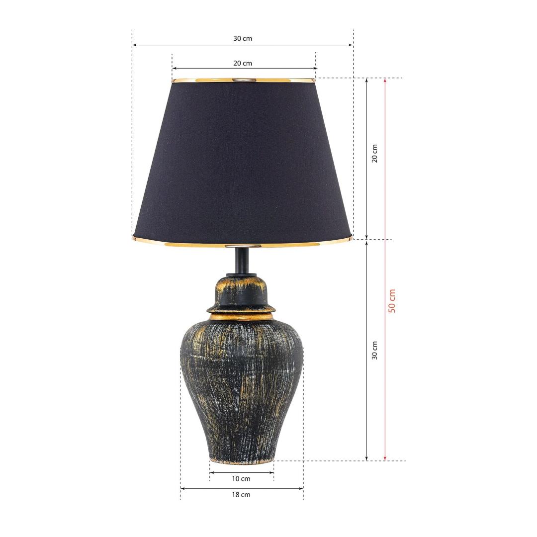 Valgustage oma ruumi elegantsi ja stiiliga meie hämmastava metallkorpusega lauavalgustiga. See peen lamp omab sujuvat metallkorpust koos kangast kattega, luues rafineeritud ja modernse ilme, mis täiustab igat ruumi teie kodus. Kuld- ja mustade värvide kombinatsioon lisab teie sisustusele luksuse ja glamuuritunde, muutes selle ideaalseks silmapaistvaks detailiks.Lisage oma ruumile elegantsiOlgu see teie öökapil, laual või elutoas, see lauavalgusti tõstab koheselt teie ruumi atmosfääri. Ahnuslik disain ja värvikombinatsioon teevad sellest mitmekesise detaili, mis sobib igasuguste sisustustüüpidega, alates kaasaegsest kuni traditsioonilise.Looge hubane ja kutsuv atmosfäärSelle pehme ja sooja kuma abil loob see lauavalgusti hubase ja kutsuva atmosfääri, mis on ideaalne lõõgastumiseks või külaliste vastuvõtmiseks. Olgu te lugemas raamatut, töötamas sülearvutiga või lihtsalt nautimas vaikset õhtut kodus, see lamp pakub täpselt vajalikku valgust, et luua õige meeleolu.Tehnilised andmed:Metallkorpus kangast kattegaLaius: 18 cmKatte kõrgus: 50 cmKatte laius: 30 cmPesatüüp: E27 Max 40WVärv: Kuldne ja mustÄrge jätke kasutamata võimalust lisada oma koju luksuse ja rafineerituse puudutus meie metallkorpusega lauavalgustiga. Tellige oma täna ja muutke oma ruum stiilseks pühamuks. Värv: Gold Black
