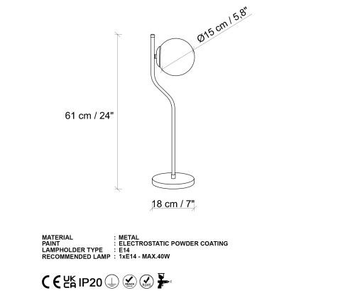 Socket Type: 1 x E 14 Max 40 W
