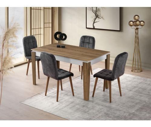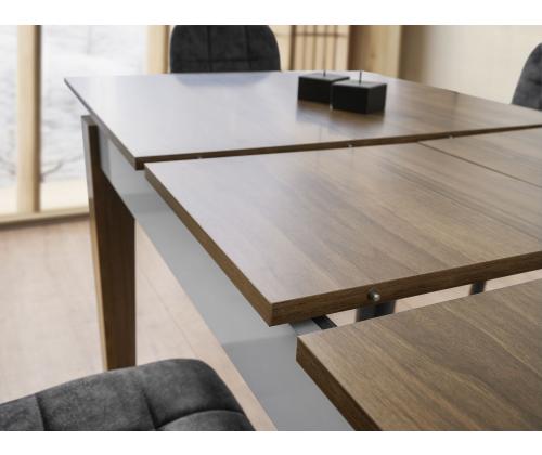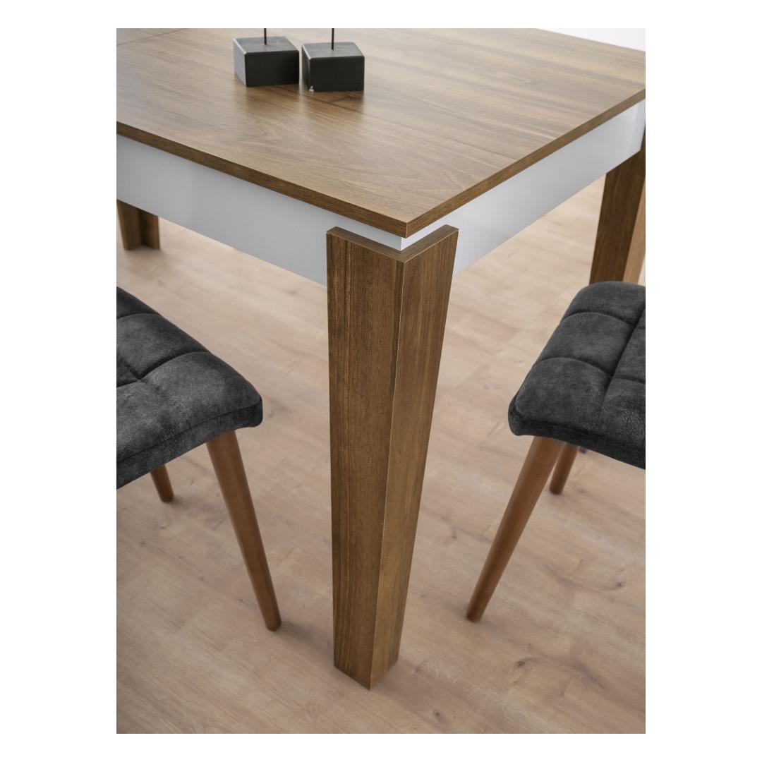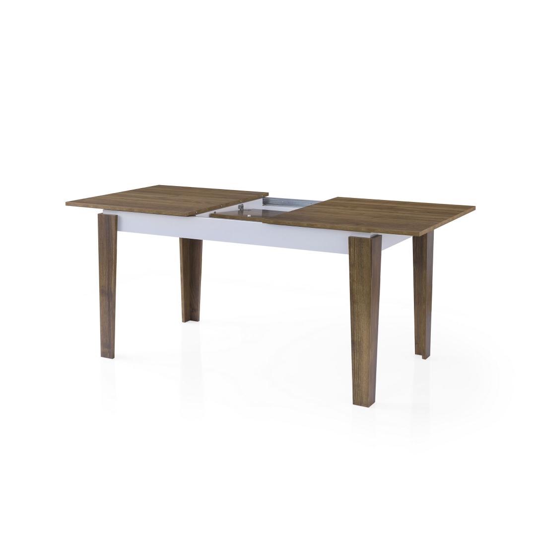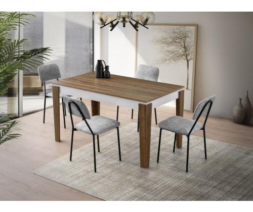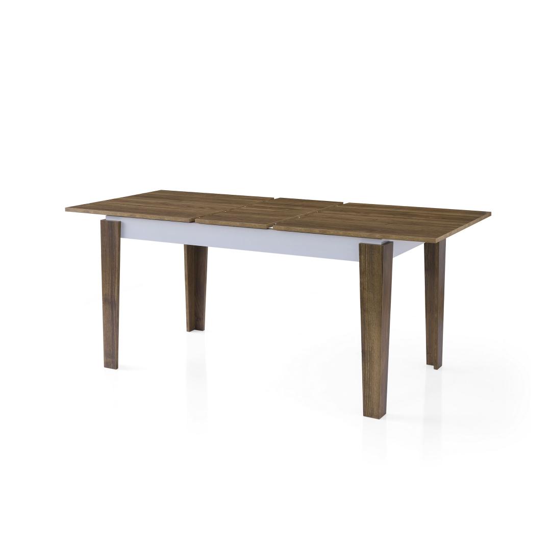Kas otsite söögilauda, mis on mitte ainult stiilne, vaid ka praktiline? Siis olete õiges kohas! Meie pikendatav söögilaud on ideaalne täiendus teie kodu jaoks, pakkudes nii funktsionaalsust kui ka elegantsi.Elegants ja MitmekesisusSee söögilaud on valmistatud 100% melamiinkattega puitlaastplaadist, tagades vastupidavuse ja pikaealisuse. Pähklipuu ja valge värvikombinatsioon lisab igasse söögituppa natuke rafineeritust, samas kui pikendatav funktsioon võimaldab teil vajadusel rohkem külalisi mahutada.Funktsionaalne Disain18 mm paksuse ja puitlaastplaadi jalgadega on see laud mitte ainult tugev, vaid ka stiilne. Laua suurus on 140 cm laius, 75 cm kõrgus ja 80 cm sügavus, pakkudes piisavalt ruumi einestamiseks, samas kui pikendatav laius 175 cm võimaldab lisakohti.Jõud ja StabiilsusMalest hoolimata on sellel söögilaual kandevõime 100 kg, mistõttu sobib see igapäevaseks kasutamiseks. Olgu tegemist õhtusöögipidamise või rahuliku eine nautimisega perega, see laud suudab kõike taluda.Uuendage oma söögituba meie pikendatava söögilauaga juba täna ja kogege stiili ja funktsionaalsuse ideaalset segu!Tehnilised Andmed:Materjal: 100% melamiinkattega puitlaastplaatPaksus: 18 mmJalad: PuitlaastplaatLaua Suurus: Laius: 140 cm, Kõrgus: 75 cm, Sügavus: 80 cmPikendatav Laua Laius: 175 cmKandevõime: 100 kgVärv: Pähklipuu ja Valge Värv: Walnut White