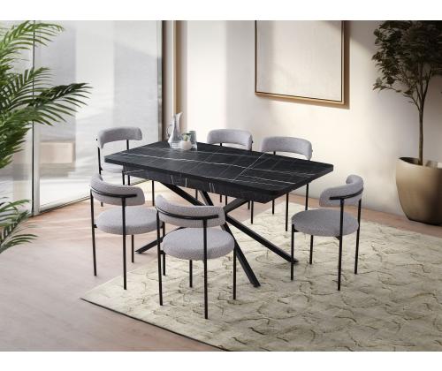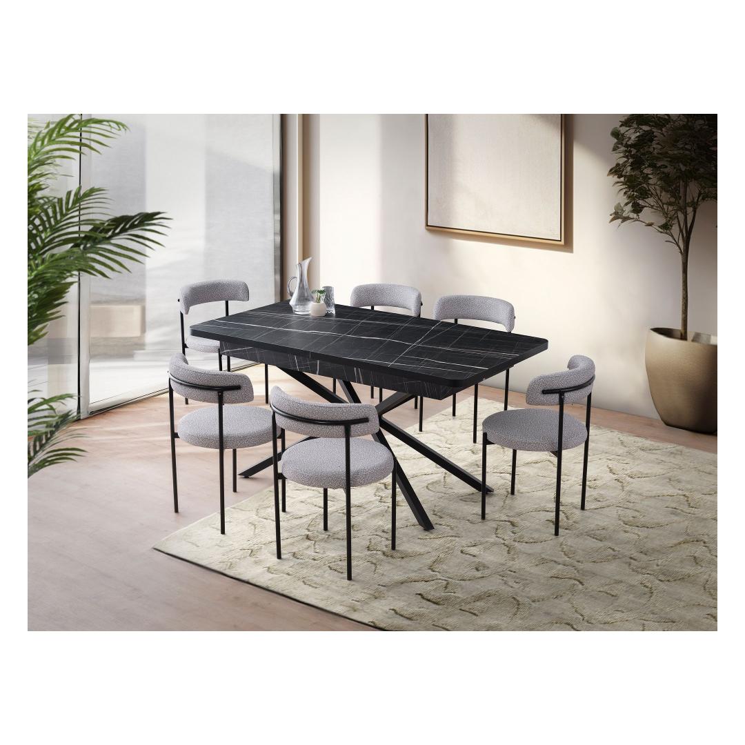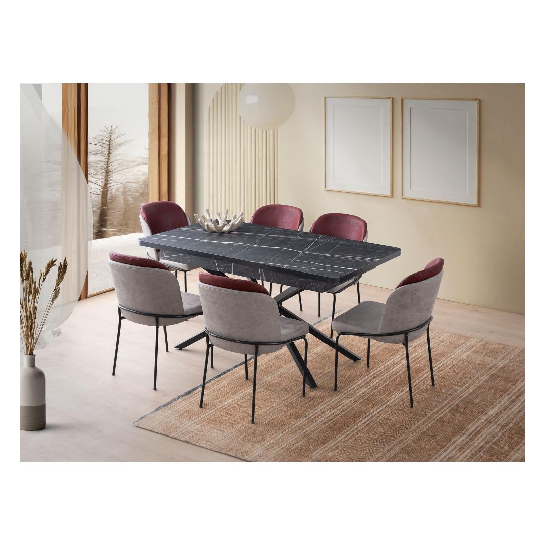 Muuda oma söögituba stiilseks ja funktsionaalseks ruumiks meie pikendatava söögilaua abil. See kaasaegne mööbliese on loodud muljet avaldama oma elegantse musta ja valge värvikombinatsiooniga, muutes selle mitmekülgseks lisandiks igasse kodu sisustusse.Elegantne disain igasse koju100% melamiinkattega puitlaastplaadi konstruktsioon tagab vastupidavuse ja pikaealisuse, samas kui staatiliselt värvitud rauajalgadega on tagatud stabiilsus ja tugi. Laua pikendatav omadus võimaldab sul hõlpsasti mahutada lisakülastajaid õhtusöökide või koosolekute jaoks, muutes selle praktiliseks valikuks igas majapidamises.Loo meeldejäävaid hetkiKujutle rõõmu, kui kutsud pereliikmeid ja sõpru selle kauni söögilaua ümber, luues unustamatuid mälestusi ja jagades maitsvaid eineid. Selle avarad mõõtmed, 160 cm laius, 79 cm kõrgus ja 90 cm sügavus, mahutavad mugavalt kuni 6 inimest, kandevõimega 100 kg lisamugavuse tagamiseks.Tehnilised andmed:Materjal: 100% melamiinkattega puitlaastplaatPaksus: 18 mmJalad: Staatiliselt värvitud raudLaius: 160 cm (200 cm pikendatuna)Kõrgus: 79 cmSügavus: 90 cmKandevõime: 100 kgVärv: Must ja valgeUuenda oma söögikogemust meie pikendatava söögilaua abil juba täna ja muuda iga eine eriliseks sündmuseks. Tellige nüüd ja tõstke oma kodu sisustus selle stiilse ja praktilise mööbliesemega. Värv: Black White