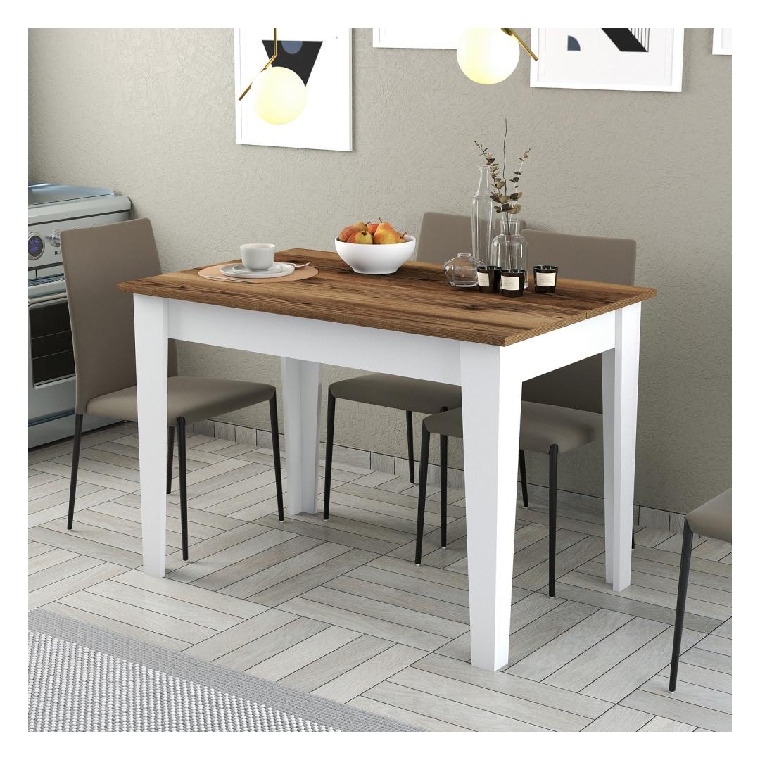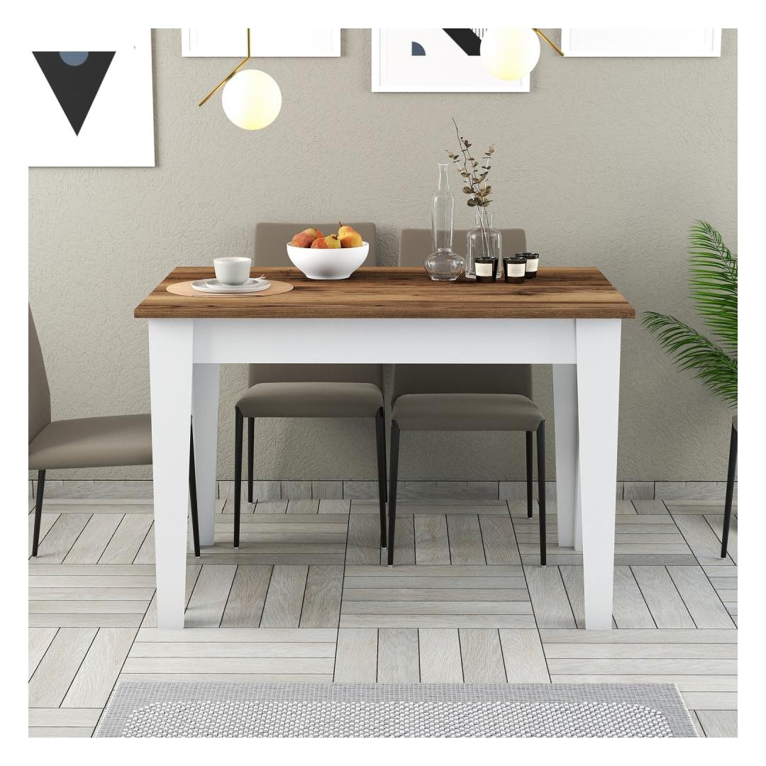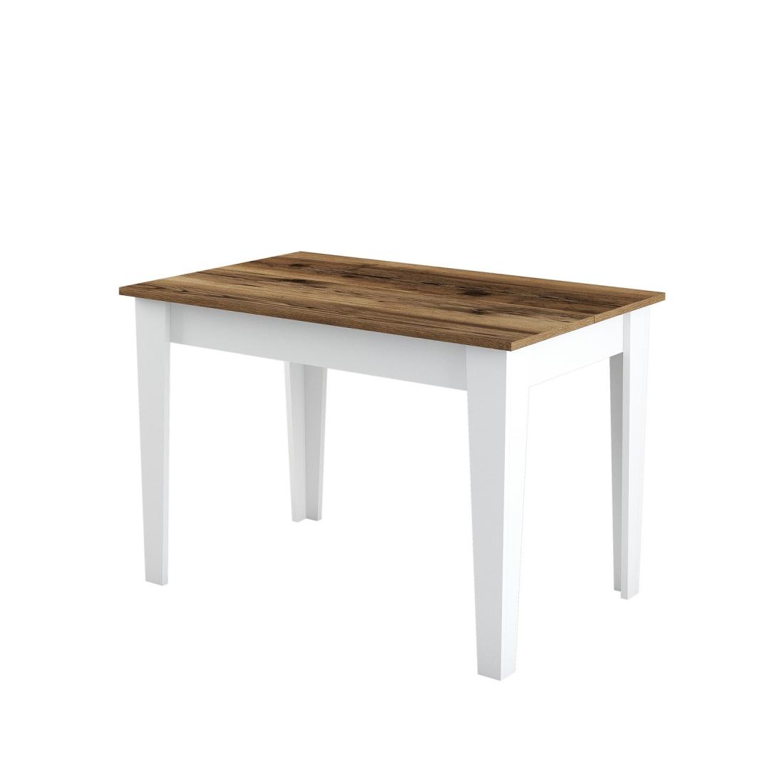 Crafted from 100% melamine coated particle board, this kitchen table is not only durable but also exudes a luxurious look. The 18 mm thickness ensures its sturdiness, making it perfect for everyday use. The walnut and white color combination adds a touch of elegance and sophistication to your kitchen decor.