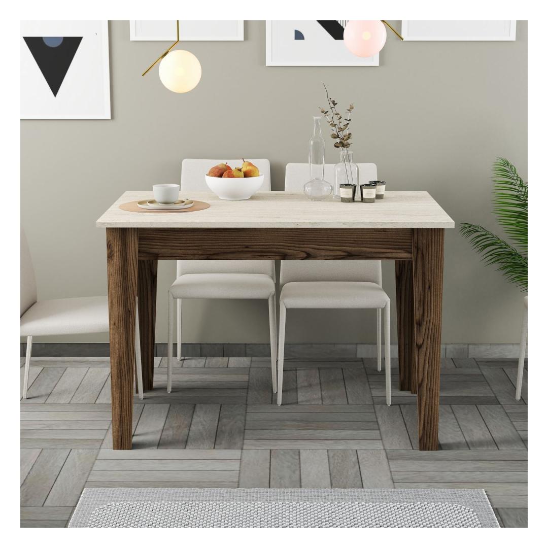 Transform your kitchen into a stylish and functional space with our stunning kitchen table. Made from 100% melamine coated particle board, this table is not only durable but also incredibly easy to clean, making it perfect for busy households. The walnut and travertine colors add a touch of elegance to any kitchen decor, while the 18mm thickness ensures stability and longevity.