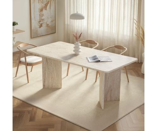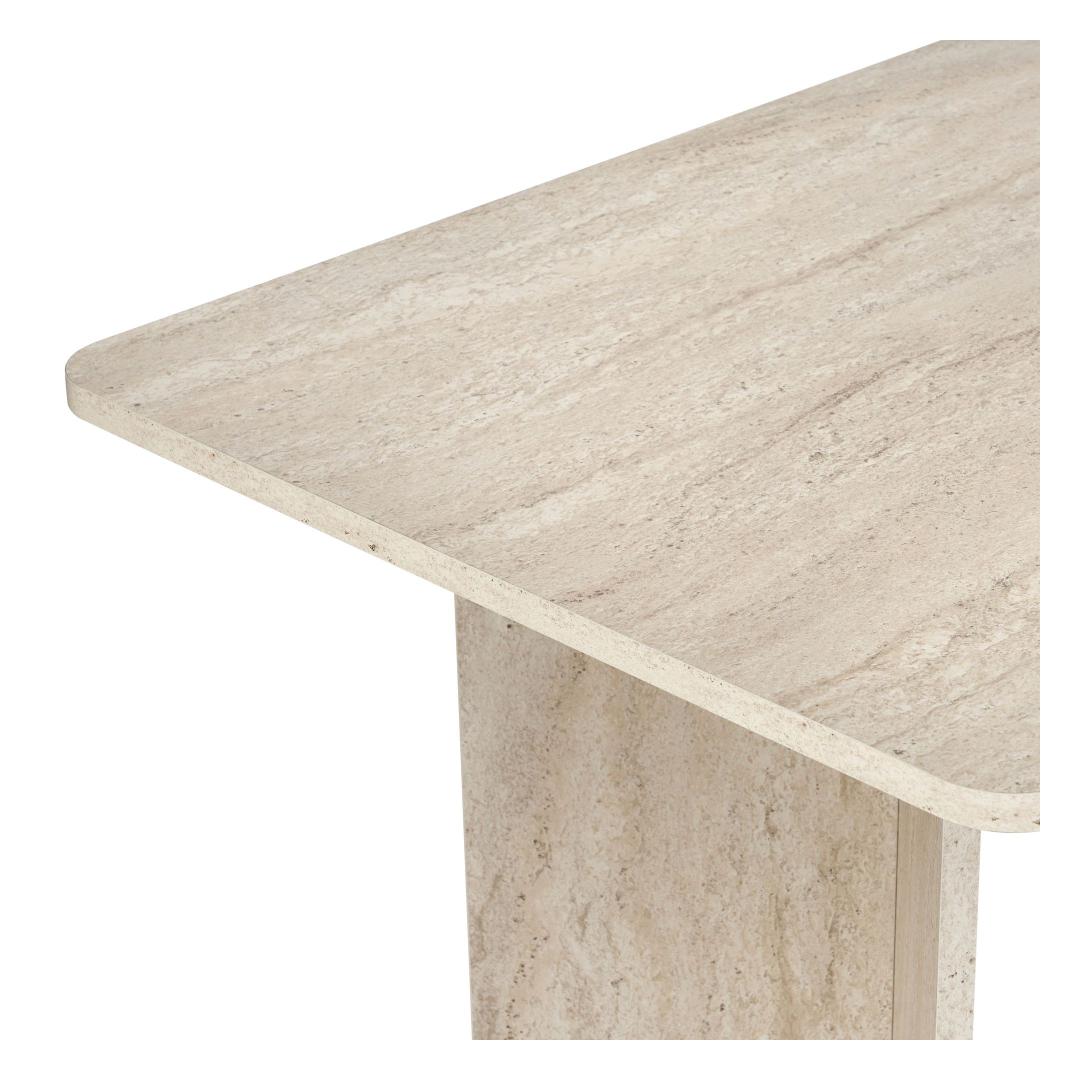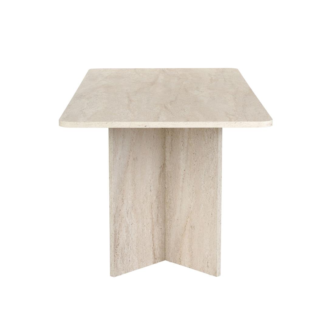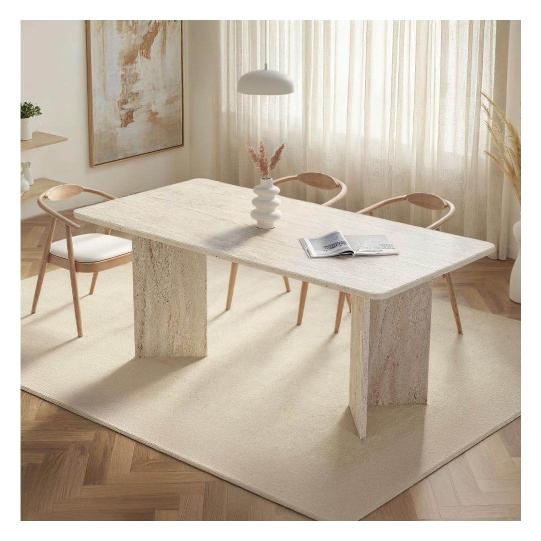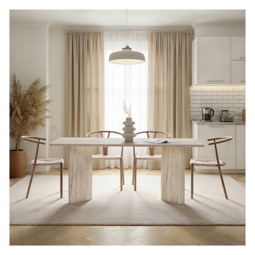 Muuda oma söögituba luksuslikuks ja elegantseks ruumiks meie hämmastava travertiini söögilaua abil. Valmistatud 100% melamiinkattega puitlaastplaadist, kiirgab see laud rafineeritust ja stiili. Ühtlane beež värv koos modernse marmorikujundusega lisab sinu sisustusele värskendavat puudutust, muutes selle ideaalseks keskpunktiks peresündmustel ja õhtusöökidel.Tõsta oma söögikogemus uuele tasemeleKujutle, et korraldad õhtusööke ja peresündmusi selle kauni söögilaua ümber. Travertiini värv lisab sinu ruumile luksuse puudutuse, samas kui marmorikujundus toob sinu sisustusse modernse pöörde. Sinu külalised jäävad selle laua ilu ja elegantsi üle imetlema, muutes iga eine meeldejäävaks kogemuseks.Kvaliteetne käsitööEhitatud 25 mm paksusest melamiinkattega puitlaastplaadist, on see söögilaud mitte ainult stiilne, vaid ka vastupidav ja pikaealine. 70 kg kandevõimega saad julgelt asetada sellele lauale oma raskemad nõud ja dekoratsioonid. Ruumikad mõõtmed 180 cm x 75 cm x 90 cm pakuvad piisavalt ruumi, et sinu pereliikmed ja sõbrad saaksid koos koguneda ja einestada.Tehnilised andmed:Materjal: 100% melamiinkattega puitlaastplaatPaksus: 25 mmMõõtmed: 180 cm (L) x 75 cm (K) x 90 cm (S)Kandevõime: 70 kgVärv: TravertiiniKontseptsioon: Ühtlane värv - beež, modernne - uuenduslik, marmorUuenda oma söögituba meie travertiini söögilauaga ja loo ruum, mis kiirgab luksust ja rafineeritust. Muuda iga eine eriliseks sündmuseks selle elegantse ja stiilse mööbliesemega. Tellige oma juba täna ja tõsta oma söögikogemus täiesti uuele tasemele. Värv: Travertine