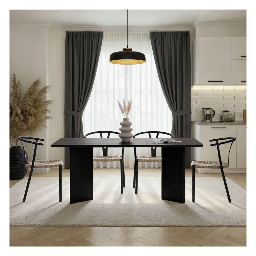 Muuda oma söögituba stiilseks ja rafineerituks meie hämmastava puidust musta söögilauaga. See laud on valmistatud 100% melamiiniga kaetud puitlaastplaadist, mis kiirgab elegantsi ja vastupidavust.Tõsta oma söögikogemus uuele tasemeleTehke avaldus selle stiilse ja modernse söögilaua disainiga. Sügav must värv lisab igasse söögituppa rafineerituse, samas kui 25 mm paksus tagab tugevuse ja pikaealisuse.Ideaalne külaliste vastuvõtmiseksOlgu tegemist õhtusöögipeo või peresöögi nautimisega, see laud on igas olukorras ideaalne keskpunkt. 180 cm laiuse ja 75 cm kõrgusega on kõigil piisavalt ruumi kokku tulla ja head toitu ning seltskonda nautida.Ületamatu kvaliteet ja stiilPuidust must värv lisab teie ruumile luksuse puudutuse, samas kui uuenduslik modernne disain eristab seda lauda teistest. 70 kg kandevõimega võite olla kindel, et see laud on mitte ainult ilus, vaid ka praktiline ja usaldusväärne.Tehnilised andmed:Materjal: 100% melamiiniga kaetud puitlaastplaatPaksus: 25 mmLaius: 180 cmKõrgus: 75 cmSügavus: 90 cmKandevõime: 70 kgVärv: Puidust must Värv: Wood Black