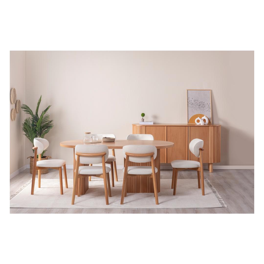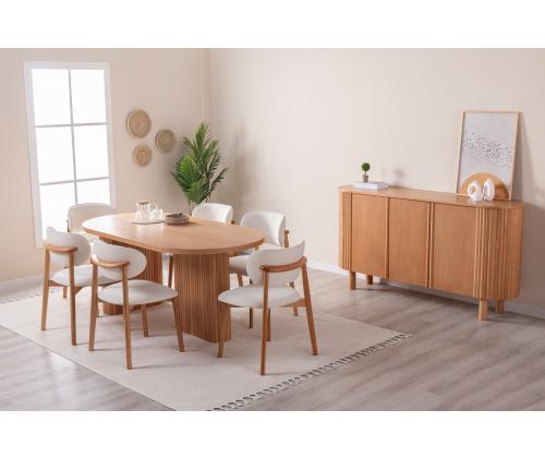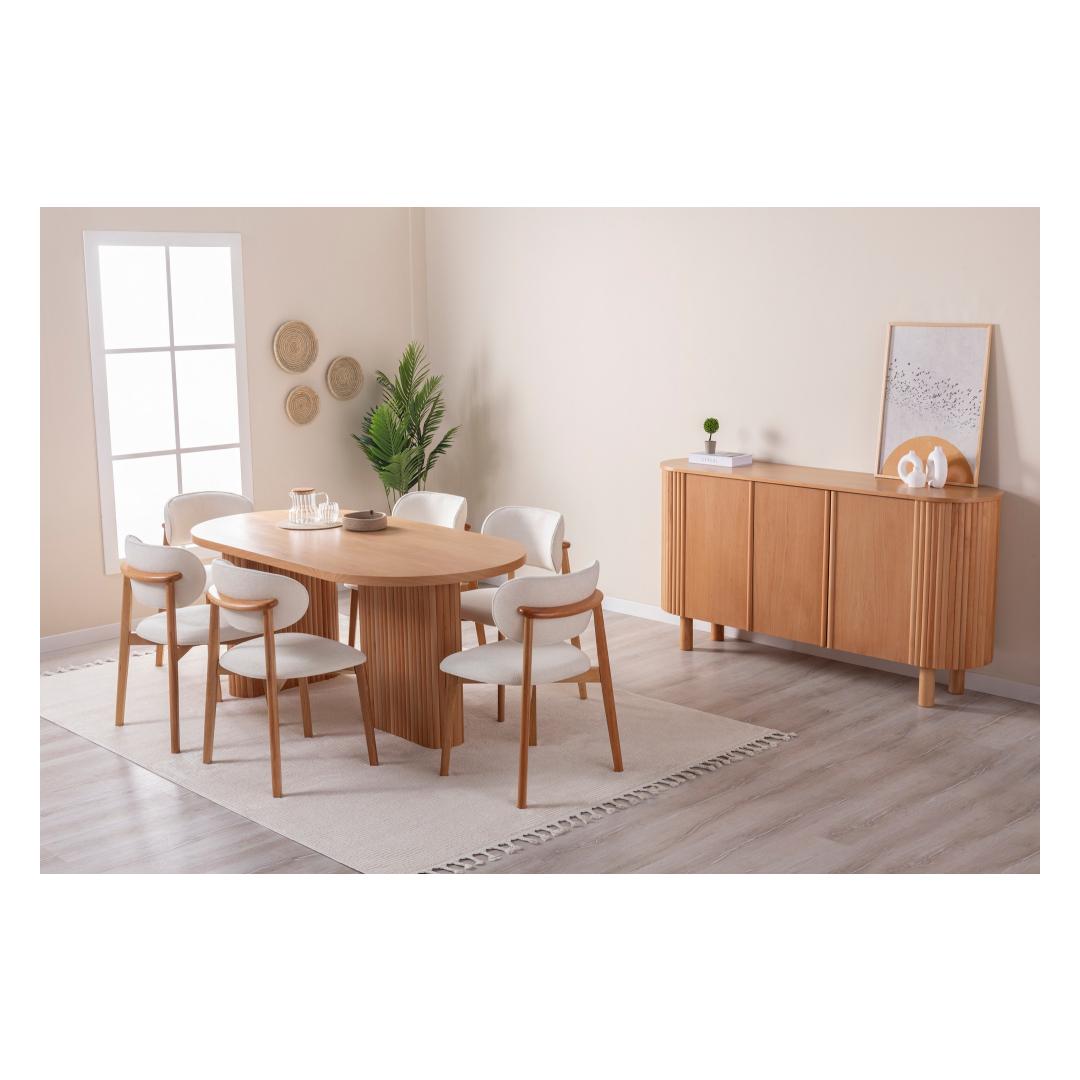 Muuda oma söögituba elegantseks ja elegantseks ruumiks meie uimastava pöögipuidust söögilauaga. See 100% mdf-puidust valmistatud ja luksusliku pöögipuiduga kaetud laud kiirgab ajatut ilu ja vastupidavust. Tõstke oma söögikogemustKujutage ette, kuidas kogunete koos oma lähedastega selle suurepärase laua ümber, jagades naeru ja luues mälestusi, mis kestavad terve elu. Selle ruumikas disain pakub mugavalt istekohta 6 inimesele, mistõttu sobib see ideaalselt intiimseteks õhtusöökideks või elavateks koosviibimisteks sõpradega. Ajatu ilu, püsiv kvaliteetSelle söögilaua rikkalik pöögivärv lisab igasse ruumi soojust ja võlu, samas kui tugev konstruktsioon tagab, et see on teie kodu keskne ese aastaid. Olenemata sellest, kas korraldate õhtusööki või naudite rahulikku sööki oma perega, see laud tõstab teie söögikogemust. Tehnilised üksikasjad:Materjal: Materjal: Materjal: Materjal: Materjal: Materjal: Materjal: Materjal: Materjal: 100% MDF, kaetud pöögipuidugaMõõdud: Laius 180 cm, kõrgus 75 cm, sügavus 90 cm.Istekohtade arv: 6 inimestVärv: pöök Värv: Beech