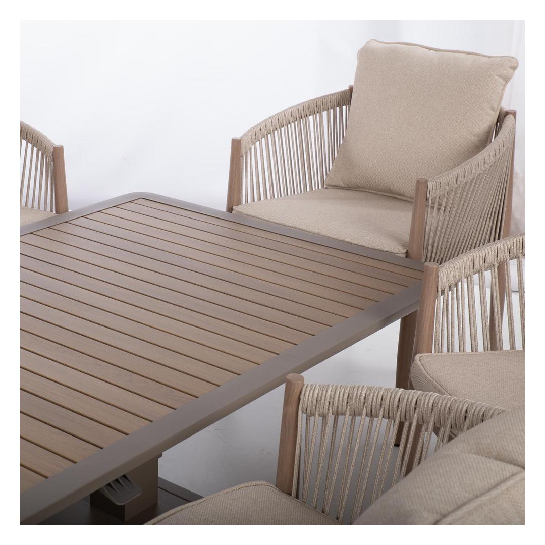 Pöytälevyn puukuviointi on saatu aikaan lämpösyrjäpainatuksella. Puukuvioinnin siirtämiseksi alumiinipinnalle alumiiniprofiilin päälle asetetaan siirtokalvo, jota kuumennetaan voimakkaasti. Prosessin aikana painoväri siirtyy siirtokalvolta alumiinipinnalle, jolloin syntyy puun kaltainen efekti. Tällä tavoin viimeistelty pinta on erittäin kestävä ja kestää auringonvaloa sekä pieniä naarmuja.