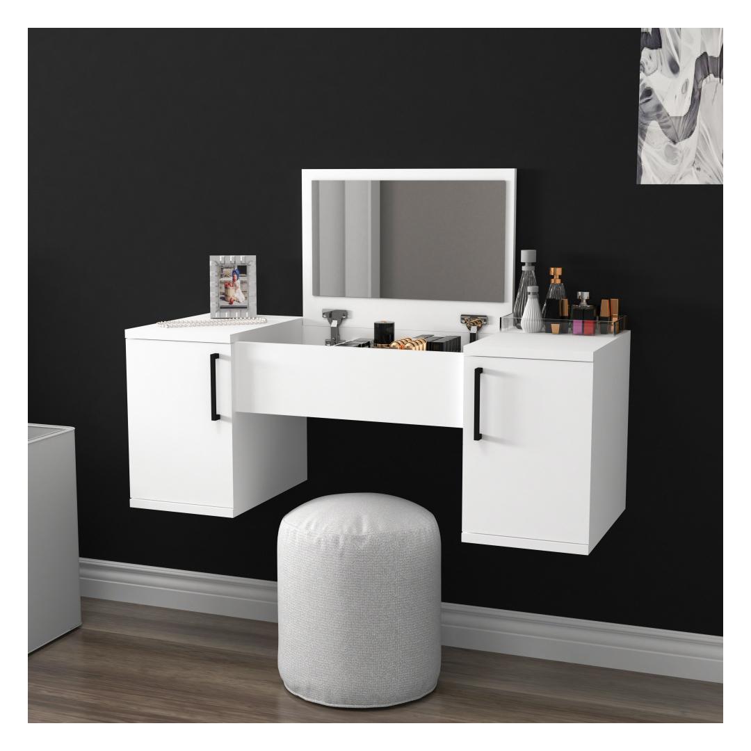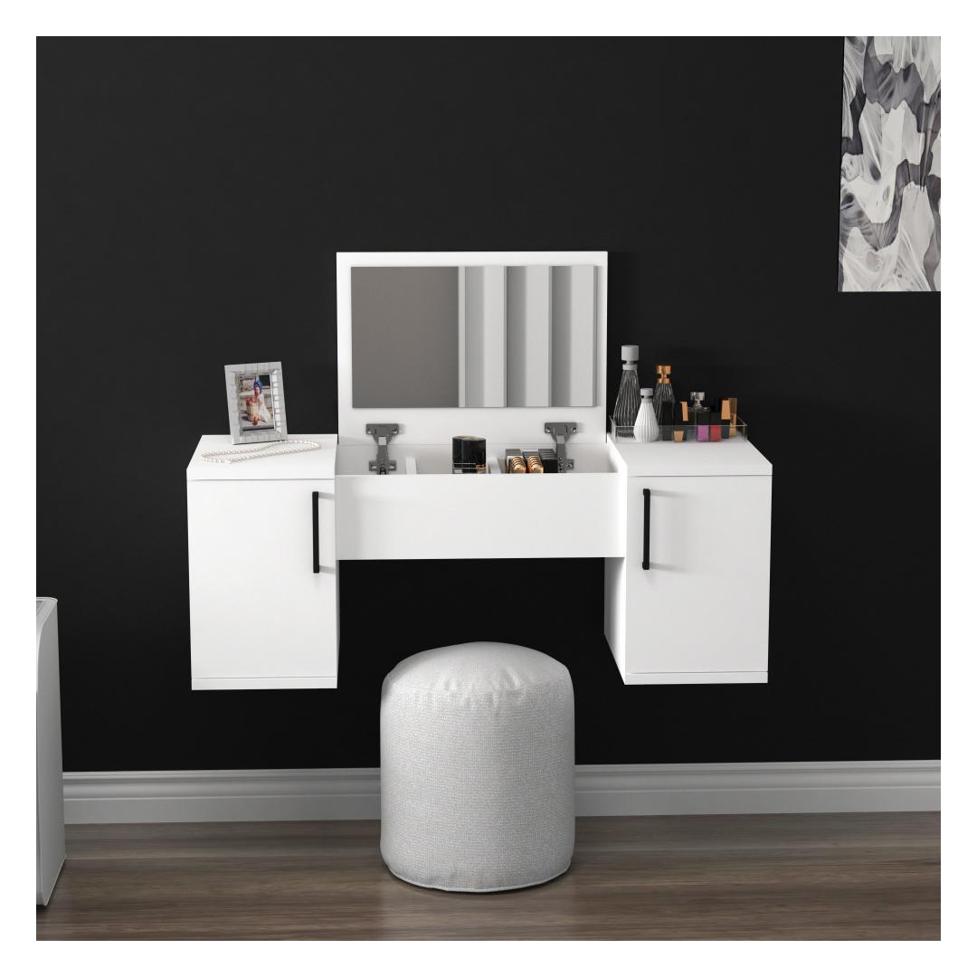 Muutke oma igapäevane rutiin luksuslikuks elamuseks meie suurepärase meigilaua abil. Nautige selle kaunilt valmistatud eseme elegantsust ja funktsionaalsust, mis on loodud teie ilurituaalide täiustamiseks ja teie ruumi kaunistamiseks. Kogege modernsuse ja uudsuse võlu meie ühevärvilise - valge kontseptsiooniga. Selle meigilaua sile ja minimalistlik disain sulandub vaevata igasse ruumi, lisades sellele rafineerituse ja stiili. Looge oma isiklik pühapaik hotelli ja skandinaavia inspireeritud esteetika abil. Sukelduge rahulikku ja rahulikku õhkkonda, kui hellitate ennast peegli ees, ümbritsetuna selle meigilaua rahustavast atmosfäärist. Tehnilised üksikasjad:Materjal: MATERJAL: 100% MELAMIINIGA KAETUD PUITLAASTPLAATPaksus: 18 mmMeigilaua suurus: Laius: 100 cm, kõrgus: 74. 1 cm.Peegli suurus: Laius: 49. 6 cm, kõrgus: 35. 5 cmPeegliga kaasasArvukad riiulid mugavaks hoiustamiseksSaab hõlpsasti seinale kinnitada stabiilsuse ja ohutuse tagamiseksVärv: valgeKoge meie meigilaua täiuslik segu funktsionaalsusest, stiilist ja elegantsusest. Tellige kohe ja muutke oma ilurutiini igaveseks! . Värv: White