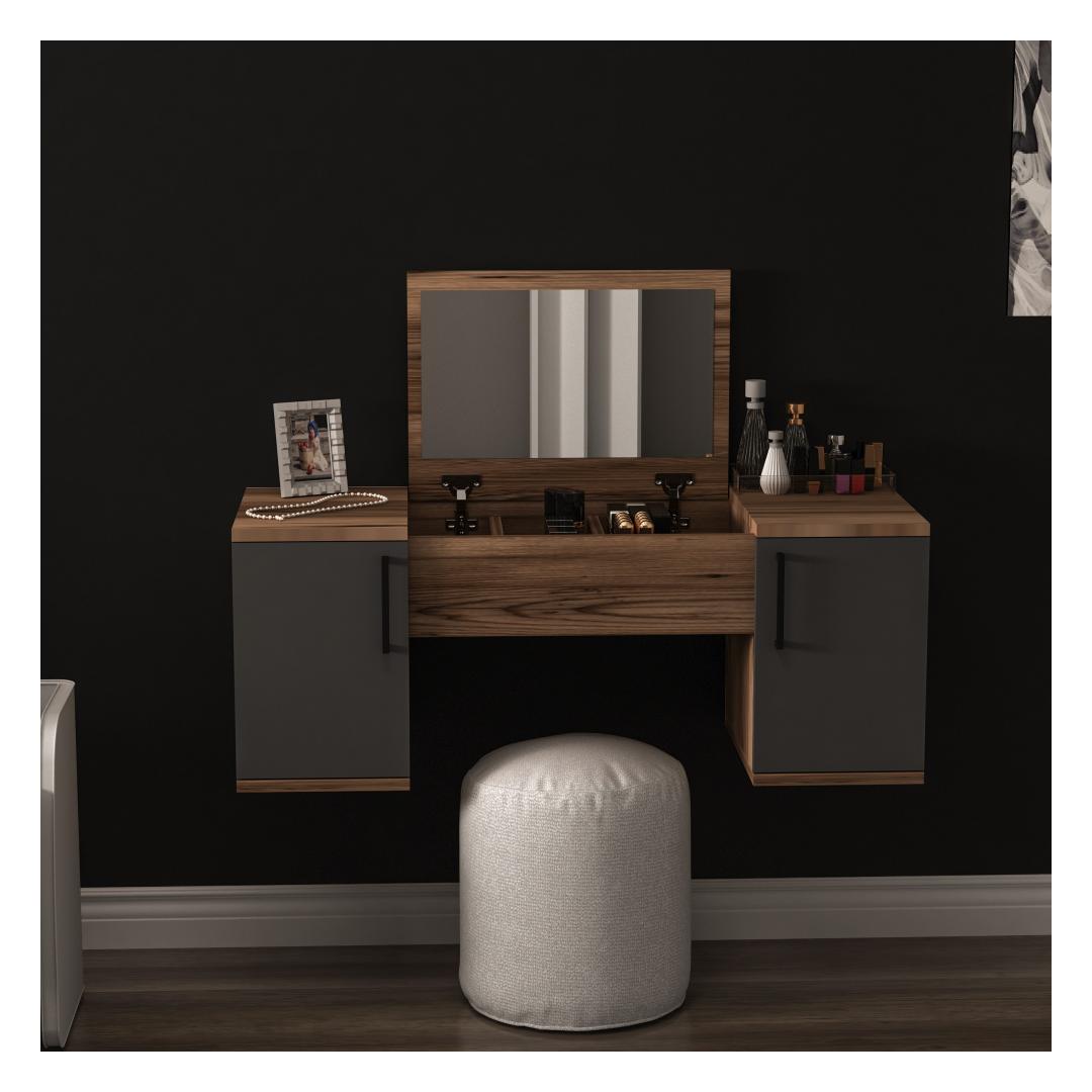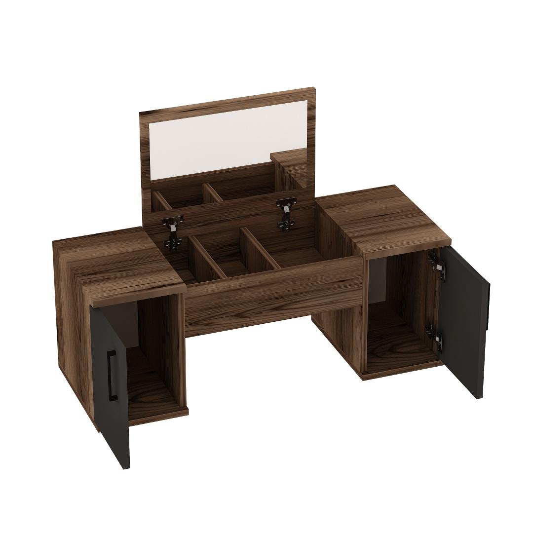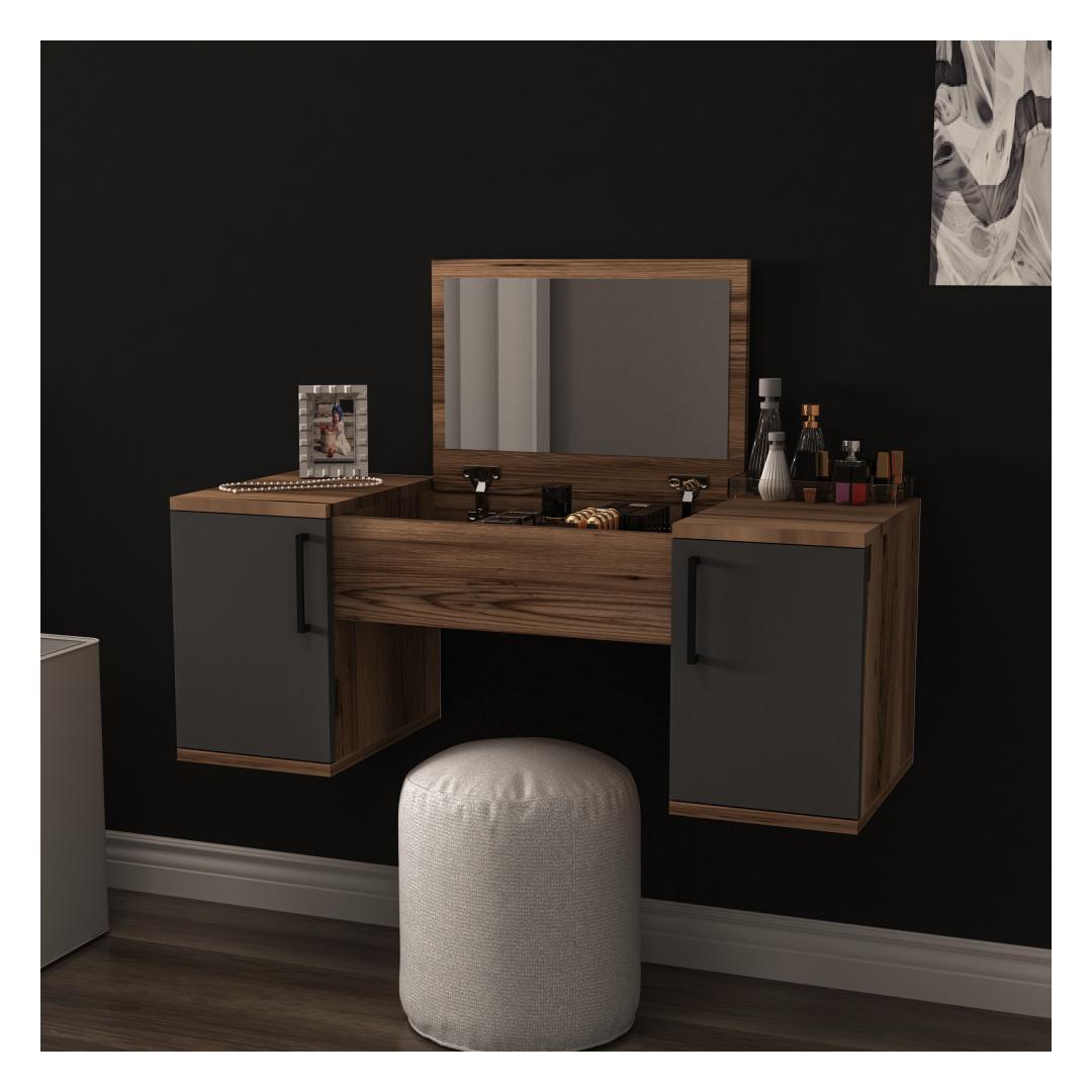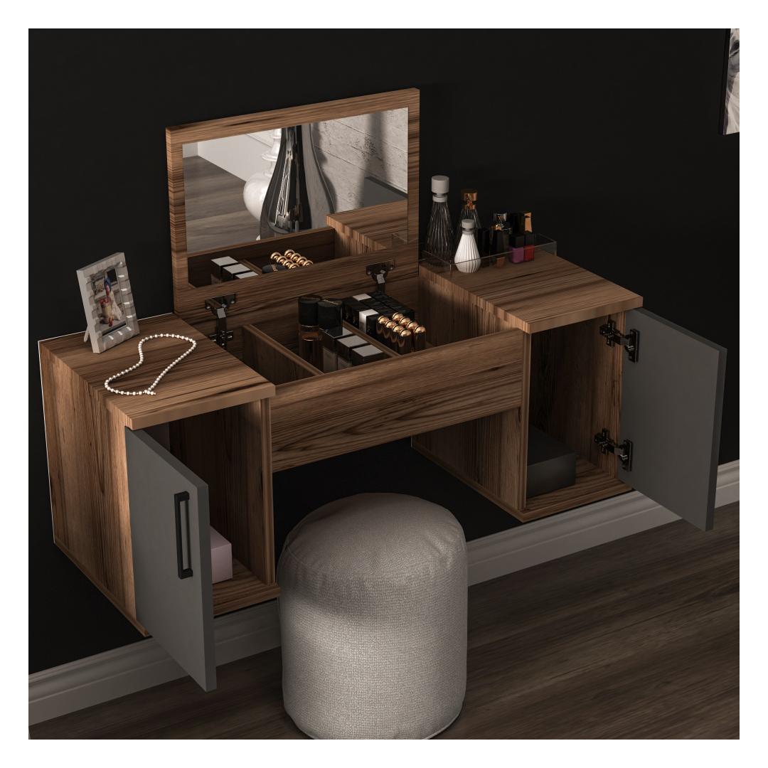 Muuda oma hommikurutiin meie kauni meigilaudaga, mis on loodud armastuse ja detailidele tähelepanu pööramisega. Sujuv disain ja elegantne värvikombinatsioon Hele Pähkel ja Antratsiit lisavad igasse ruumi peenust.Paranda oma ilu rutiiniÜtle hüvasti segastele tööpindadele ja tere organiseeritud õnnele meie meigilaudaga. Avatud pind pakub piisavalt ruumi kõigile sinu iluessentsidele, samas kui sisse ehitatud peegel võimaldab sul oma välimust kergesti täiustada.Kvaliteetne käsitööValmistatud 100% melamiinkattega puitlaastplaadist, on see meigilaud mitte ainult stiilne, vaid ka vastupidav. 18 mm paksus tagab stabiilsuse ja pikaealisuse, nii et saad nautida oma uut ilu jaama aastaid.Tehnilised andmed:Materjal: 100% melamiinkattega puitlaastplaatPaksus: 18 mmLaius: 100 cmKõrgus: 74,1 cmSügavus: 35,5 cmPeegli laius: 49,6 cmPeegli kõrgus: 35,5 cmVärv: Hele Pähkel ja AntratsiitTõsta oma ilu rutiin uuele tasemele ja lisa oma ruumi luksuse puudutus meie meigilaudaga. Tellige oma juba täna ja kogege erinevust ise. Värv: Light Walnut Anthracite