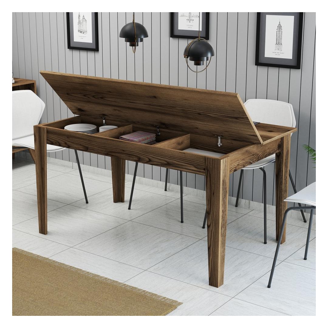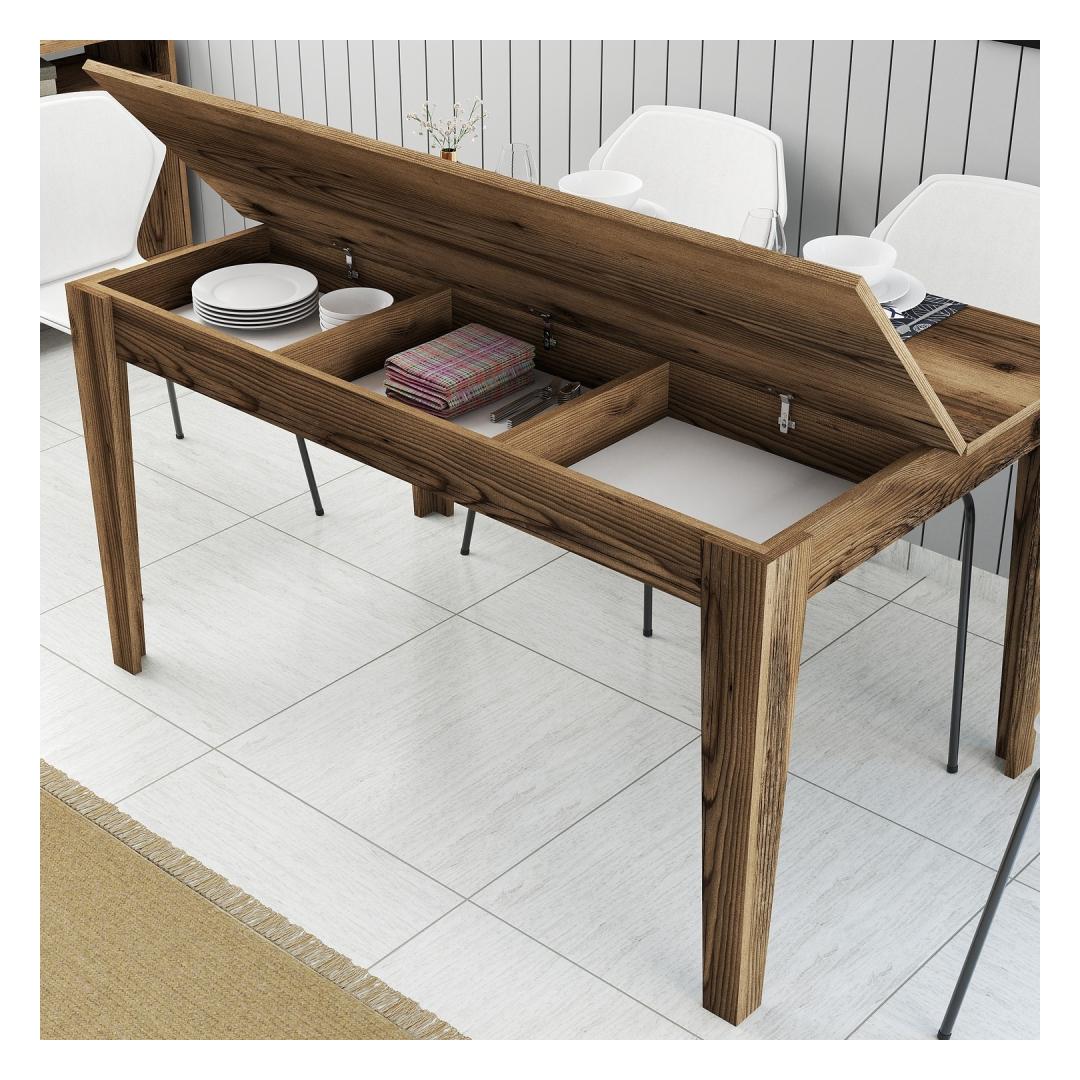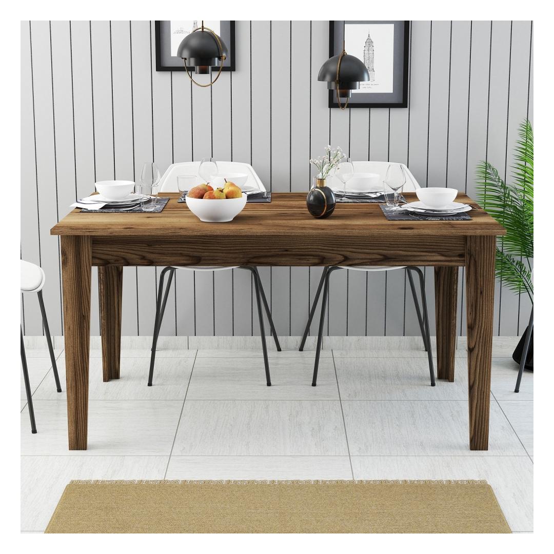 Koge meie moodsa söögilauaga täiuslikku segu elegantsist ja funktsionaalsusestTõsta oma söögikogemust meie peen söögilaud, milles on sujuvalt ühendatud stiil ja praktilisus. See ülima täpsusega valmistatud laud on disainitud nii, et see täiendab teie söögikoha esteetikat, pakkudes samas rohkelt hoiuvõimalusi. Võrratu vastupidavus ja kvaliteetSee 100% melamiiniga kaetud puitlaastplaadist valmistatud söögilaud on valmistatud kestma. 18 mm paksus tagab tugevuse ja stabiilsuse, mis võimaldab teil nautida lugematuid söögikordi koos oma lähedastega aastaid. Suntalam-jalad pakuvad täiendavat tuge, tagades, et laud jääb tugevaks ja stabiilseks. Sleek disain kaasaegse väljanägemise jaoksSelle elegantse ja moodsa disainiga söögilaud lisab igasse ruumi elegantsust. Pähklipuu värvus lisab soojust ja elegantsi, mistõttu sobib see ideaalselt iga sisustusstiiliga. Kompaktne suurus, mille laius on 145 cm, kõrgus 75 cm ja sügavus 88 cm, muudab selle ideaalseks nii väikestesse kui ka suurtesse söögikohtadesse. Mugavuse tagamiseks on rohkelt hoiuruumiSöögilaual on 42. 9 cm laiuse ja 9 cm kõrguse mõõtmetega panipaik. See pakub teile mugavat ruumi söögitarbekaupade hoidmiseks, hoides teie söögitoa segadusteta ja korrastatuna. Tehnilised üksikasjad:Toote tüüp: Tugilaud, mis on valmistatud puidust ja värvitud, kuid ei sisalda püstikuid: Toidulaud: Laua tüüp: söögilaudMaterjal: Materjal: Materjal: Materjal: Materjal: Materjal: Materjal: Materjal: materjal: 100% melamiiniga kaetud puitlaastplaatPaksus: 18 mmJalad: Suntalam jaladLaua suurus: Laius: 145 cm, kõrgus: 75 cm, sügavus: 88 cm.Panipaiga suurus: 42. 9 cm, kõrgus: 9 cmVärv: PähklipuuKontseptsioon: Kaasaegne - uudsus Värv: Walnut