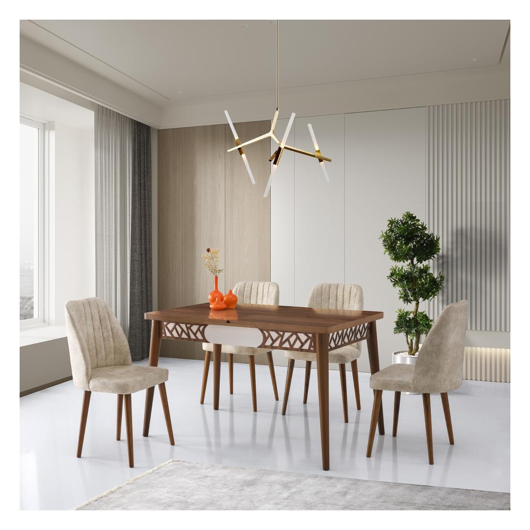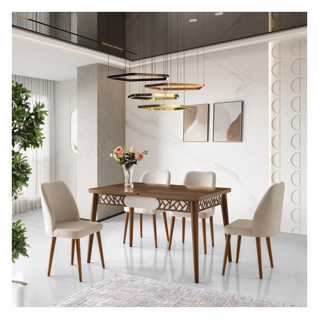Muutke oma söögituba meie uimastamise kreeka pähklilauaga. Puidu rikkalikud soojad toonid loovad teie perele ja külalistele hubase ja kutsuva õhkkonna. Klaanitud disain ja kaasaegsed plastjalad lisavad igale ruumile elegantsi. tõsta oma söögikogemust Kujutage ette, et koguneksite oma lähedastega selle ilusa laua ümber, jagab sööke ja luua mälestusi, mis kestavad kogu elu. Avar pind pakub palju ruumi roogadele, jookidele ja kaunistusteks, muutes selle ideaalseks õhtusöögikohtade või pere koosviibimiste korraldamiseks. kvaliteetne käsitöö 100% melamiiniga kaetud osakeste tahvlilt meisterdatud laud pole mitte ainult stiilne, vaid ka vastupidav ja pikaajaline. 18 mm paksus tagab stabiilsuse ja toe, plastjalad aga kaasaegse puudutuse. Pähkli värv lisab igale ruumile keerukuse. Tehnilised detailid:raam: 100% melamiiniga kaetud osakeste laud paksus: 18 mm plastist jalad Tabeli suurus: laius: 130 cm, kõrgus: 75 cm, sügavus: 80 cm laiendatud laua laius: 165 cm kandevõime: 50 kg Värv: pähkel Värv: Walnut