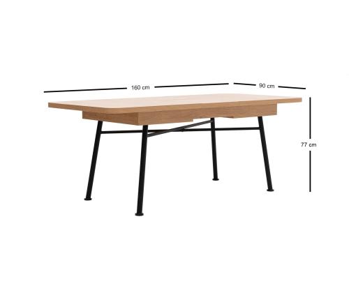 Transformeerige oma söögituba täiusliku pikendatava söögilauagaKas olete väsinud oma kitsast söögikohast? kas unistate oma lähedastega meeldejäävate õhtusöögi pidude korraldamisest? ei vaata kaugemale kui meie suurepärase pikendatava söögilaua poole! see ülima täpsusega valmistatud ja täiuslikuks disainitud laud muudab teie söögiruumi mänguliselt. Vabasta mitmekülgsuse iluTänu uuenduslikule pikendatavale funktsioonile kohandub see söögilaud vaevata teie vajadustele. Olenemata sellest, kas korraldate intiimset koosviibimist või suurt pidu, pikendage lauda lihtsalt, et mahutada rohkem külalisi. Kogege paindlikkuse rõõmu ja looge koos oma lähedastega unustamatuid mälestusi. Võrratu kvaliteet ja elegantsSee 100% melamiiniga kaetud puitlaastplaadist valmistatud söögilaud on valmistatud kestma. Tugevad metalljalad tagavad stabiilsuse ja vastupidavuse, mis võimaldab teil nautida lugematuid söögikordi aastaid. Selle naturaalne värv lisab mis tahes interjöörile rafineerituse, tõstes teie söögitoa elegantsi uutesse kõrgustesse. Tehnilised üksikasjad:Materjal: Materjal: Materjal: Materjal: Materjal: Materjal: Materjal: Materjal: materjal: 100% melamiiniga kaetud puitlaastplaatJalad: MetallLaius: 160 cm, kõrgus: 77 cm, sügavus: 90 cm.Avatud laua suurus: Laius: 198 cm, kõrgus: 77 cm, sügavus: 90 cmVärv: naturaalneElustage oma söögituba ja looge ruum, mis õhkab soojust ja stiili. Ärge jätke seda erakordset pikendatavat söögilauda kasutamata - tellige kohe ja alustage unustamatute söögielamuste teekonda! Värv: Natural