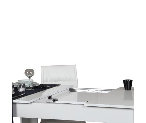 Our extendable dining table features a sleek and elegant design that will effortlessly complement any dining room decor. The solid white color adds a touch of sophistication and modernity to your space, making it the perfect centerpiece for your gatherings.