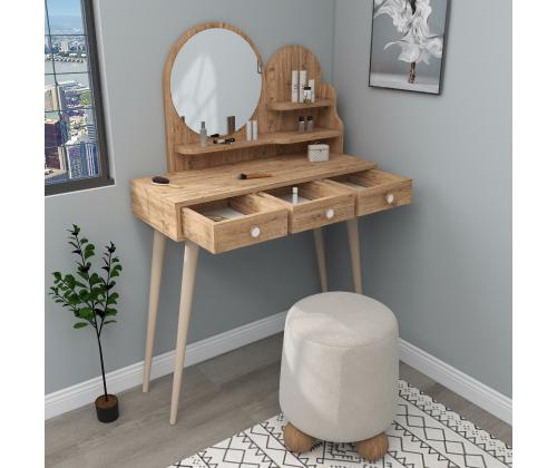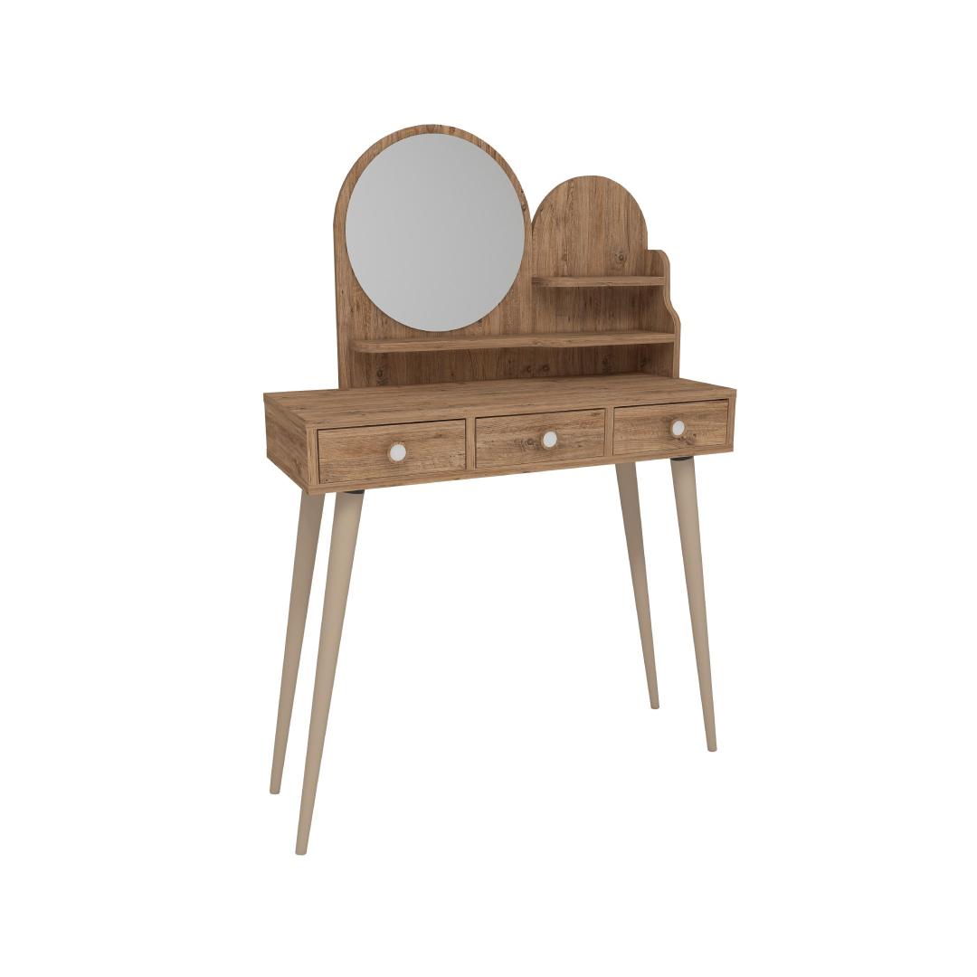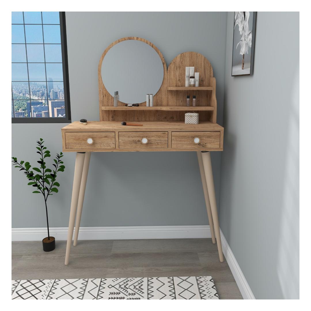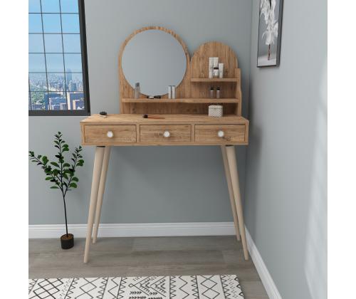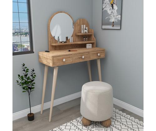 Transformeeri oma hommikune rutiin suurepärase meigilaua abilHellitage end luksuslikult kaunilt kujundatud meigilauaga, mis tõstab teie hommikuse rutiini uuele tasemele. See vapustav mööblitükk ei ole mitte ainult praktiline lisa teie magamistoas, vaid elegantsi ja elegantsuse avaldus. Vajuta end kvaliteetse käsitöögaSee äärmiselt hoolikalt ja detailidele tähelepanu pöörates valmistatud meigilaud on valmistatud 100% melamiiniga kaetud puitlaastplaadist, mis tagab vastupidavuse ja pikaealisuse. 18 mm paksus lisab tugevust, pakkudes stabiilset pinda kõigile teie ilutarvikutele. Välistage oma ilurituaali peegligaSelle meigilaua juurde kuulub peegel, millest saab teie usaldusväärne kaaslane teie ilurituaalide ajal. Selle elegantne disain ja täiuslik suurus võimaldavad hõlpsasti reguleerida, tagades, et saate iga kord saavutada ideaalse nurga veatu pealekandmiseks. Kaunistage loodust pöögipuust jalgadegaMeigilaua toetavad elegantsed pöögipuust jalad, mis lisavad teie ruumile loodusliku ilu. Need jalad ei taga mitte ainult stabiilsust, vaid suurendavad ka laua üldist esteetilist atraktiivsust, muutes selle teie ruumi tõeliseks keskpunktiks. Sukelduge atlantilise männi soojusesseMeigelaud on kaunilt viimistletud atlantilise männi värvi(de)s, mis õhkab soojust ja elegantsust. See värvivalik lisab elegantsi igasse ruumi, luues külalislahke ja kutsuva atmosfääri. Tehnilised üksikasjad:Materjal: Materjal: Materjal: Materjal: Materjal: Materjal: Materjal: Materjal: materjal: 100% melamiiniga kaetud puitlaastplaatPaksus: 18mmMugavuse tagamiseks on kaasas peegelPöögipuust jalad tagavad stabiilsuse ja esteetilisuseSuurus: kõrgus: 130. 8cm, laius: 74cm, sügavus: 35cmVärv: Atlandi männi värv(id) sooja ja kutsuva välimuse saavutamiseks. Värv: Atlantic Pine