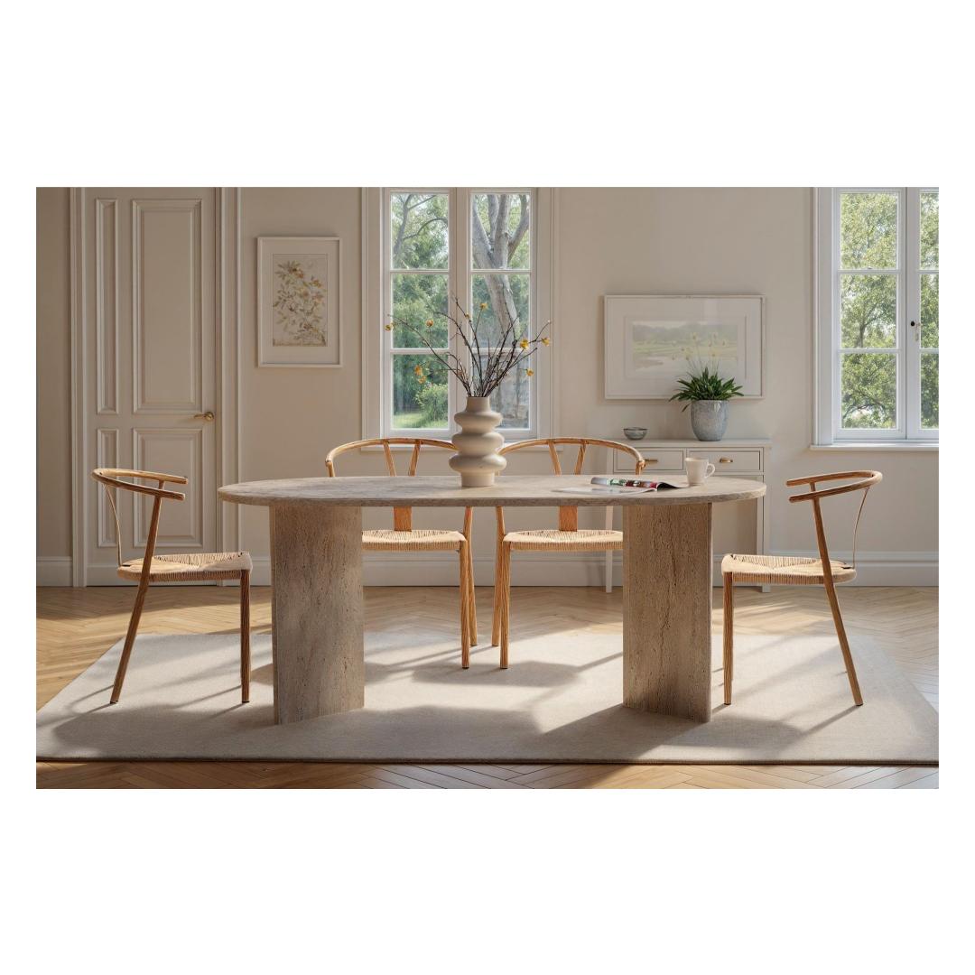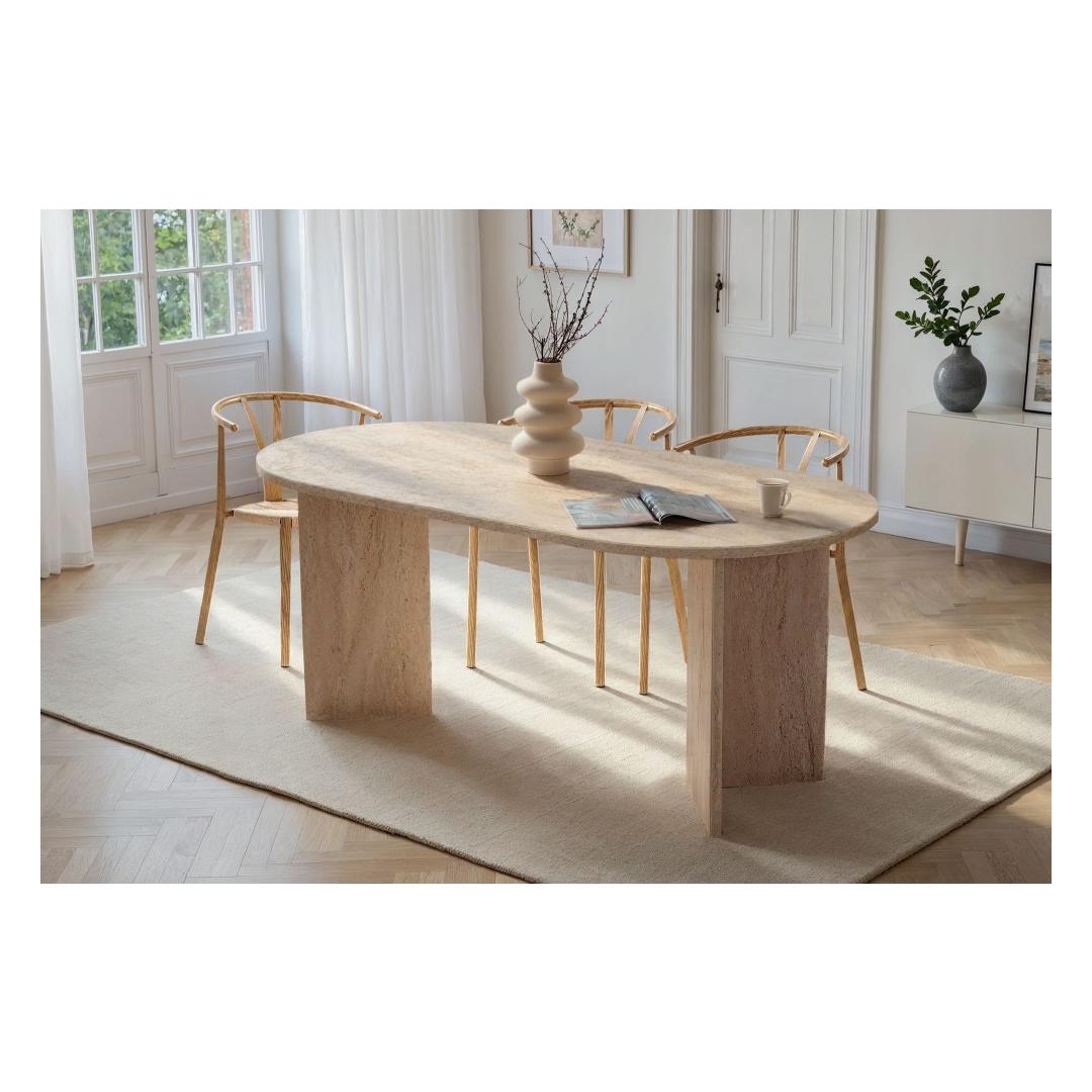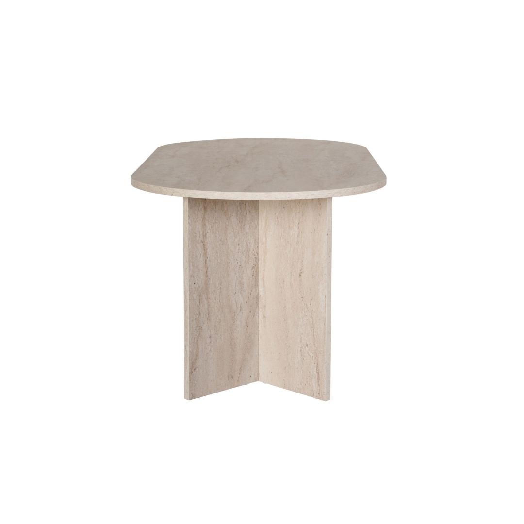 Muuda oma söögituba luksuslikuks ja elegantseks ruumiks meie hämmastava travertiini söögilaua abil. Valmistatud 100% melamiinkattega puitlaastplaadist, kiirgab see laud rafineeritust ja stiili. Ühtlane beež värv koos modernse marmorikujundusega lisab sinu sisustusele värskendavat puudutust, muutes selle ideaalseks keskpunktiks peresündmusteks ja õhtusöökideks.Tõsta oma söögikogemustKujutle, et korraldad õhtusööke ja peresündmusi selle kauni söögilaua ümber. Travertiini värv lisab sinu ruumile luksuse puudutuse, samas kui marmorikujundus toob sinu sisustusse modernse pöörde. Sinu külalised jäävad selle laua ilu ja elegantsi üle imetlema, muutes iga eine meeldejäävaks kogemuseks.Kvaliteetne käsitööEhitatud 25 mm paksusest melamiinkattega puitlaastplaadist, on see söögilaud mitte ainult stiilne, vaid ka vastupidav ja pikaealine. 70 kg kandevõimega saad julgelt asetada selle laua peale oma raskemad nõud ja dekoratsioonid ilma muretsemata. Ruumikad mõõtmed 180 cm x 75 cm x 90 cm pakuvad piisavalt ruumi, et sinu pereliikmed ja sõbrad saaksid koos koguneda ja einestada.Tehnilised andmed:Materjal: 100% melamiinkattega puitlaastplaatPaksus: 25 mmMõõtmed: 180 cm (L) x 75 cm (K) x 90 cm (S)Kandevõime: 70 kgVärv: TravertiiniKontseptsioon: Ühtlane värv - beež, modernne - uuenduslik, marmorUuenda oma söögituba meie travertiini söögilauaga ja loo ruum, mis kiirgab luksust ja rafineeritust. Muuda iga eine eriliseks sündmuseks selle elegantse ja stiilse mööbliesemega. Tellige oma juba täna ja tõsta oma söögikogemus täiesti uuele tasemele. Värv: Travertine
