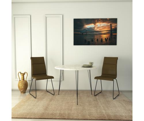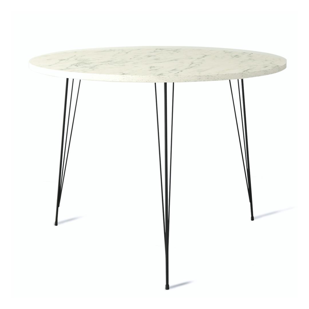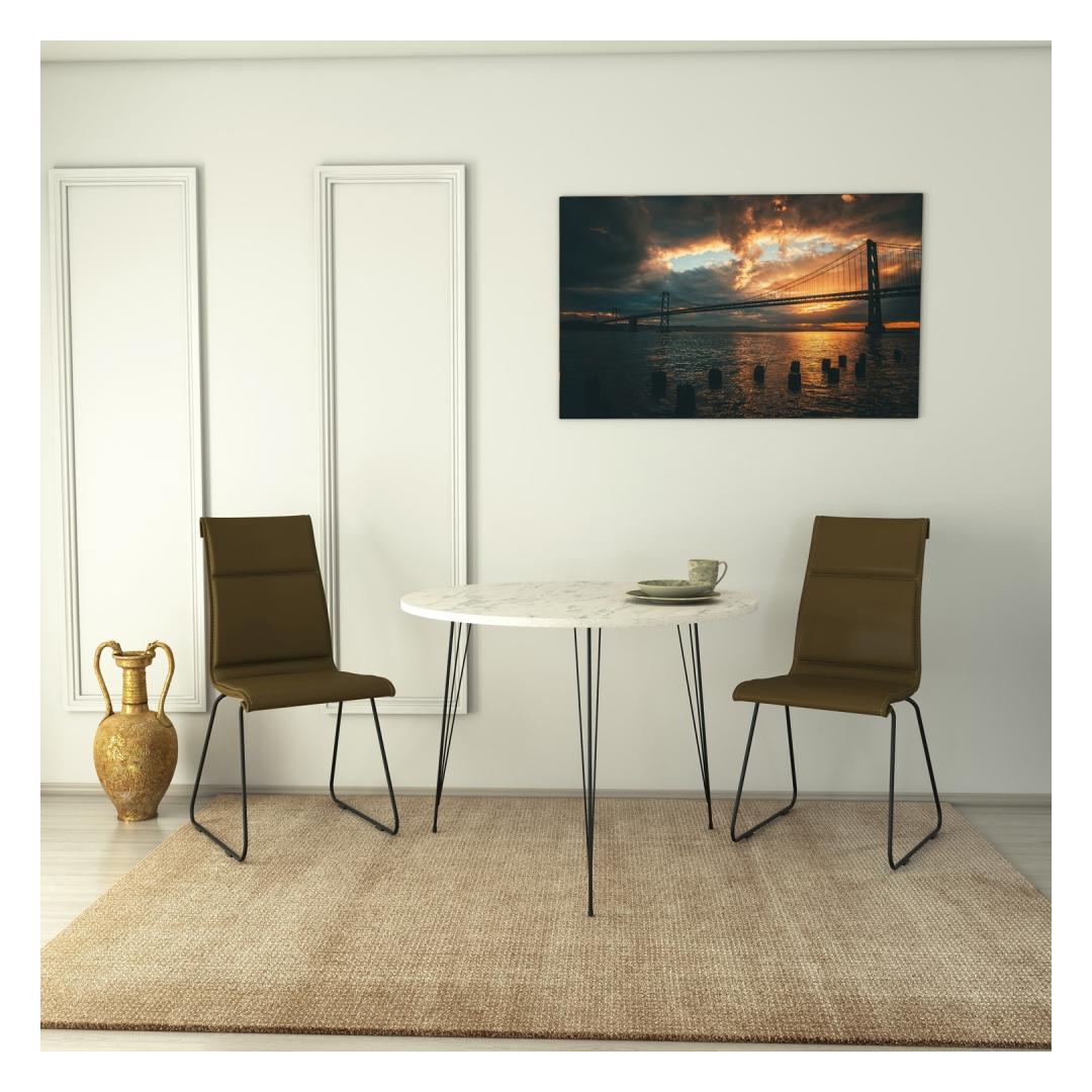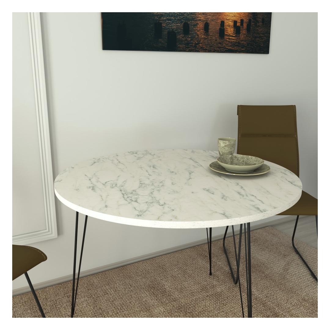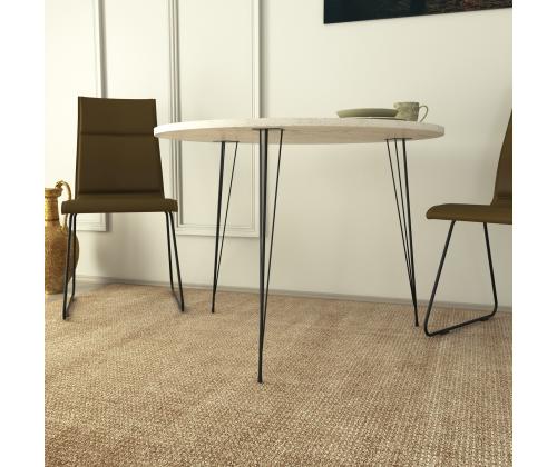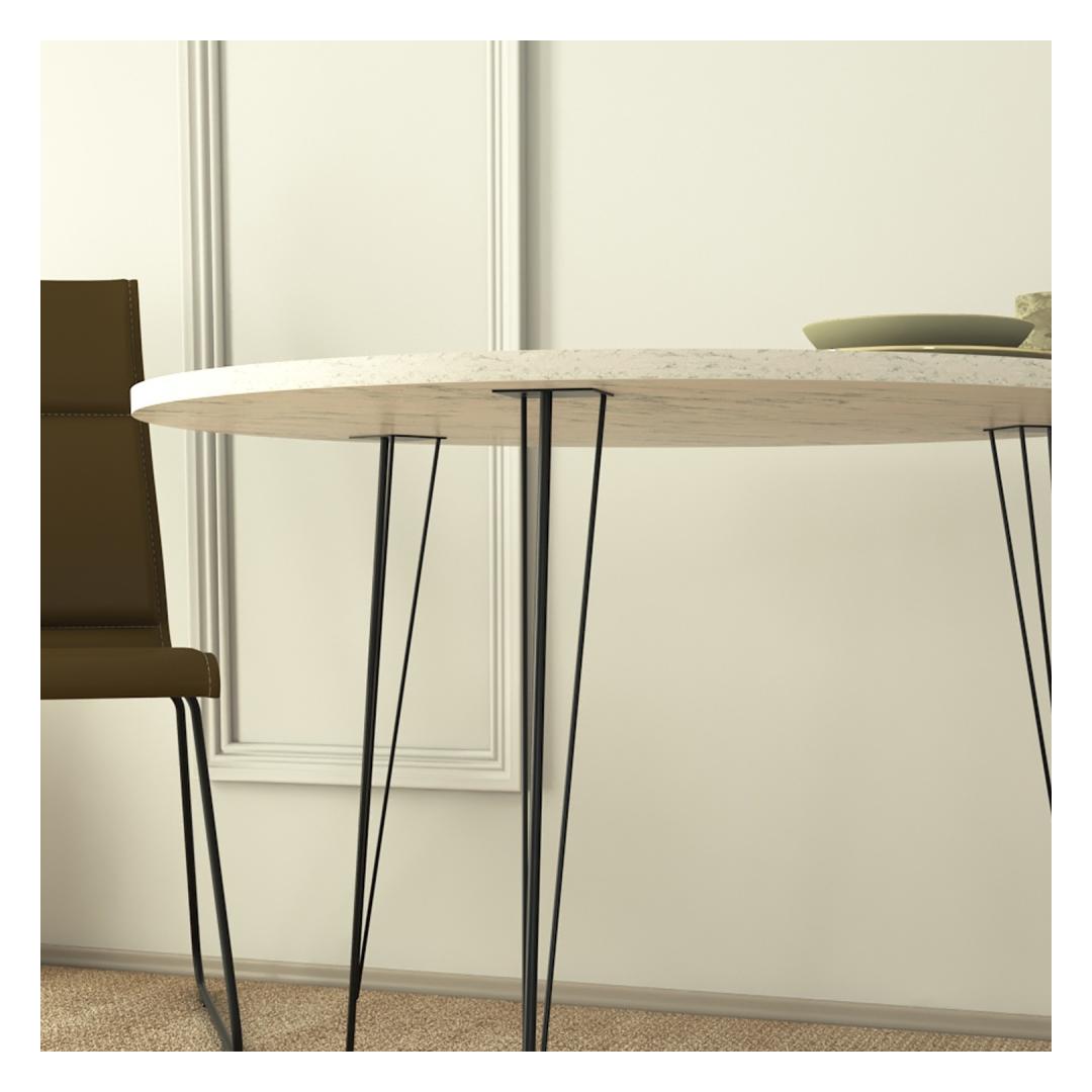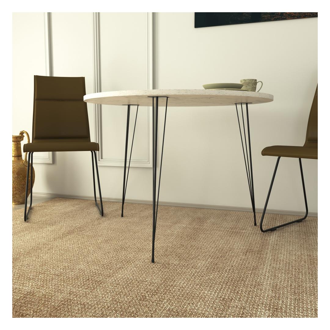 Crafted with utmost precision, this table is made from 100% melamine coated particle board, ensuring durability and longevity. Its 18 mm thickness guarantees a sturdy and reliable surface that can withstand everyday use. The sleek metal legs not only add a modern touch but also provide excellent stability, allowing you to enjoy your meals or work with peace of mind.