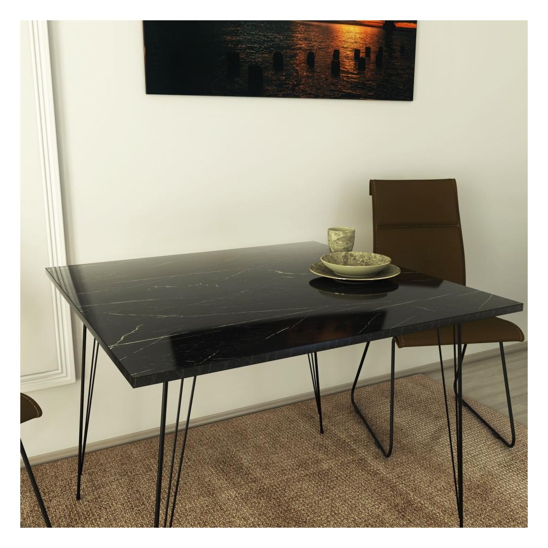 We believe in delivering nothing but the best, which is why our table is made from 100% melamine coated particle board. This ensures exceptional durability and longevity, so you can enjoy your table for years to come. The metal legs provide added stability and support, making it perfect for everyday use.