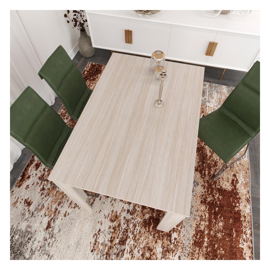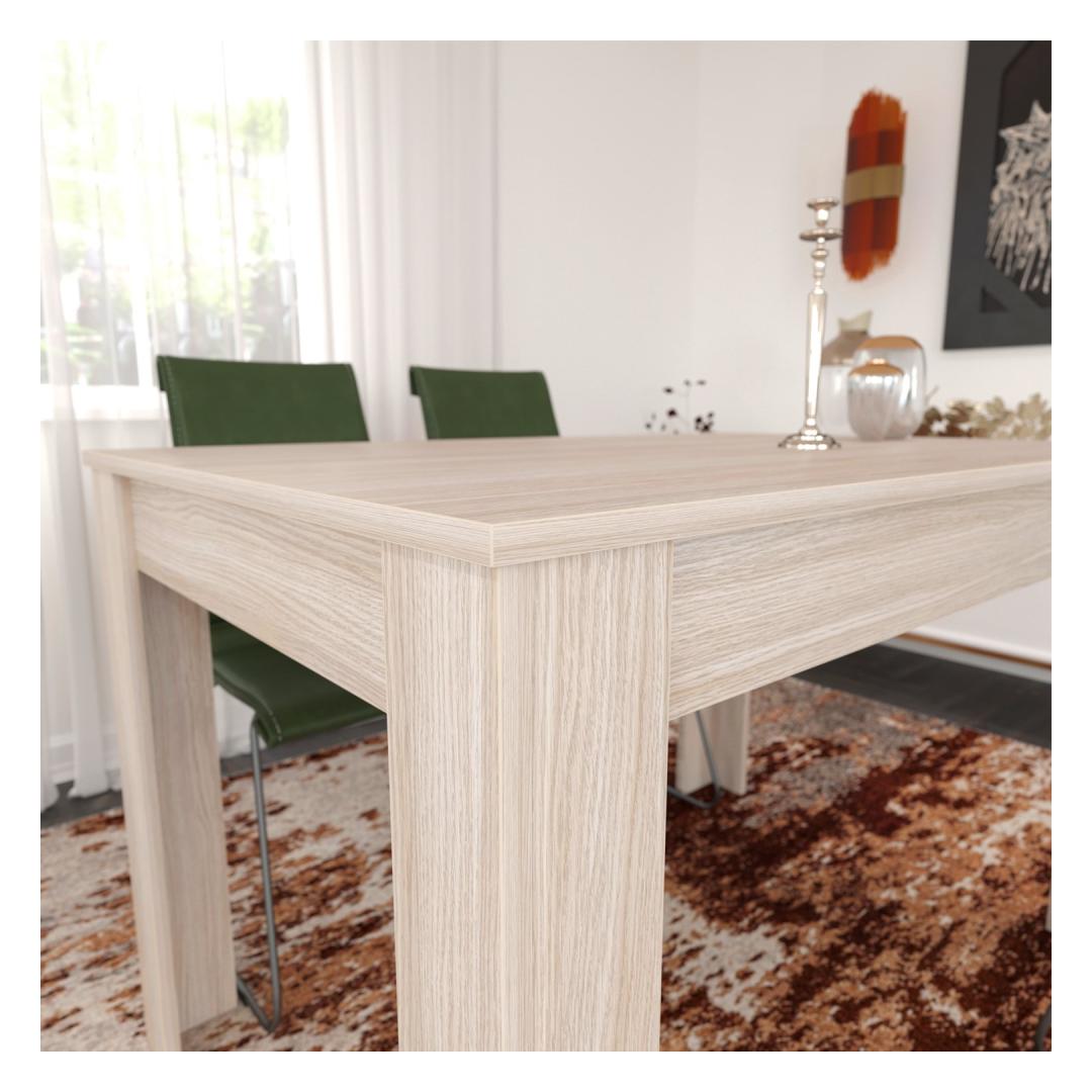 Our dining table is made from 100% melamine coated particle board, ensuring exceptional durability and longevity. The 18 mm thickness adds to its sturdiness, making it resistant to wear and tear. You can rest assured that this dining table will withstand the test of time, providing you with years of enjoyment and functionality.